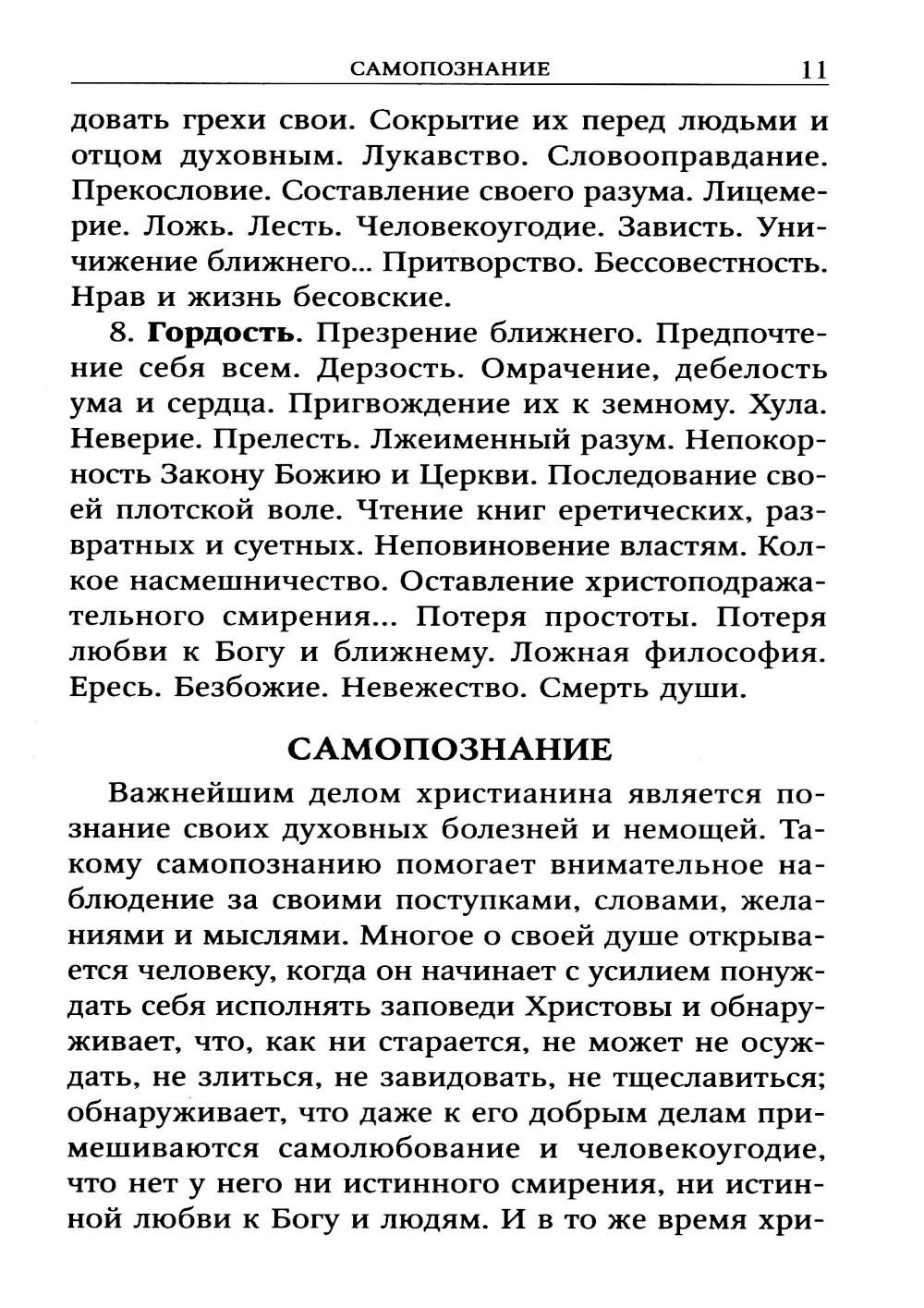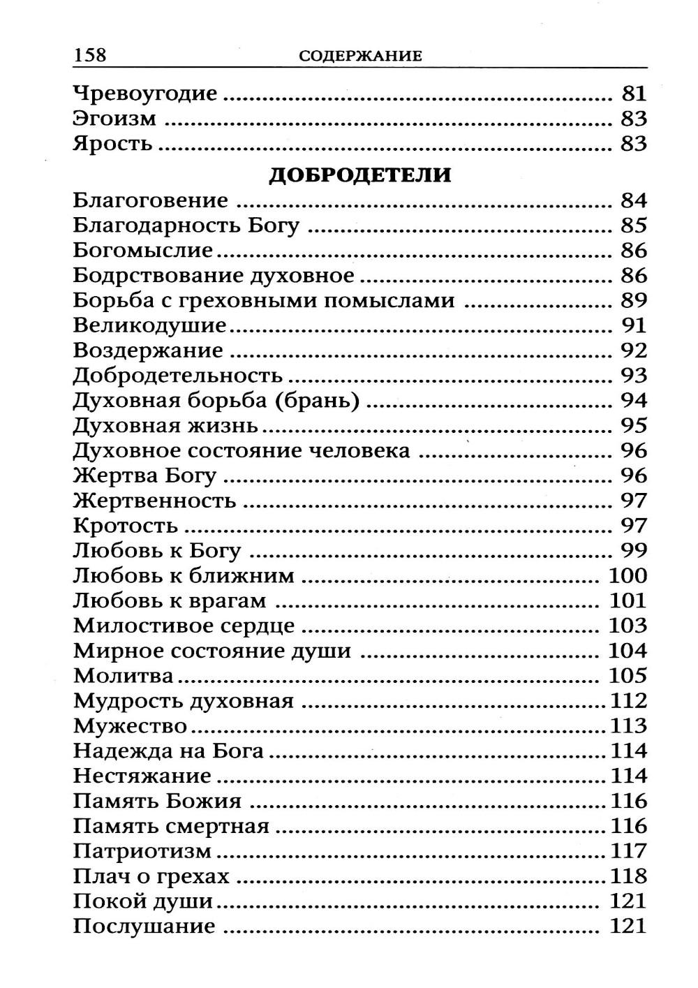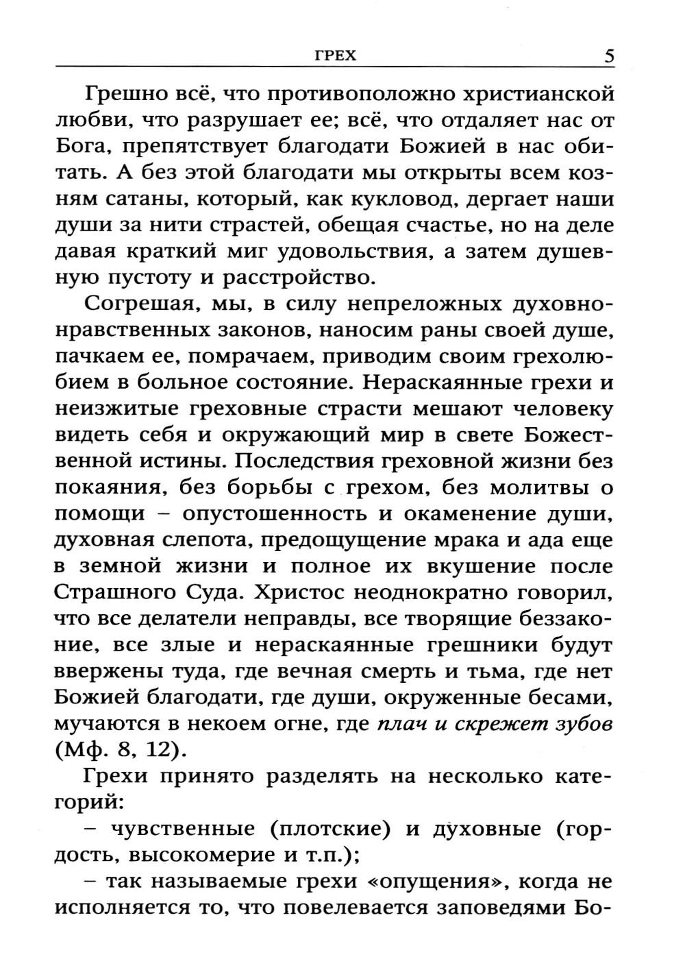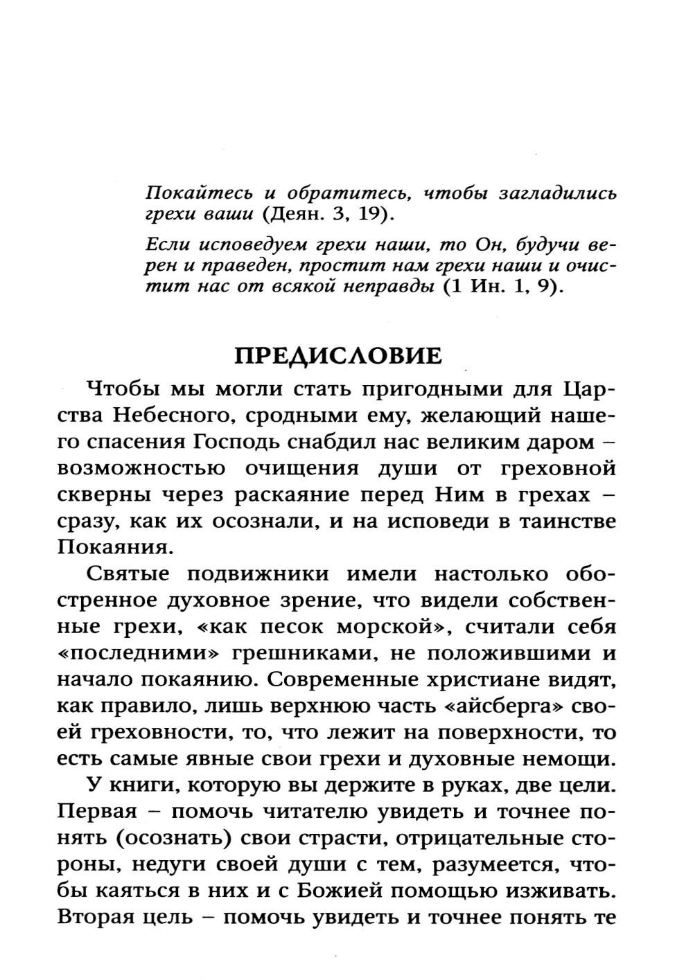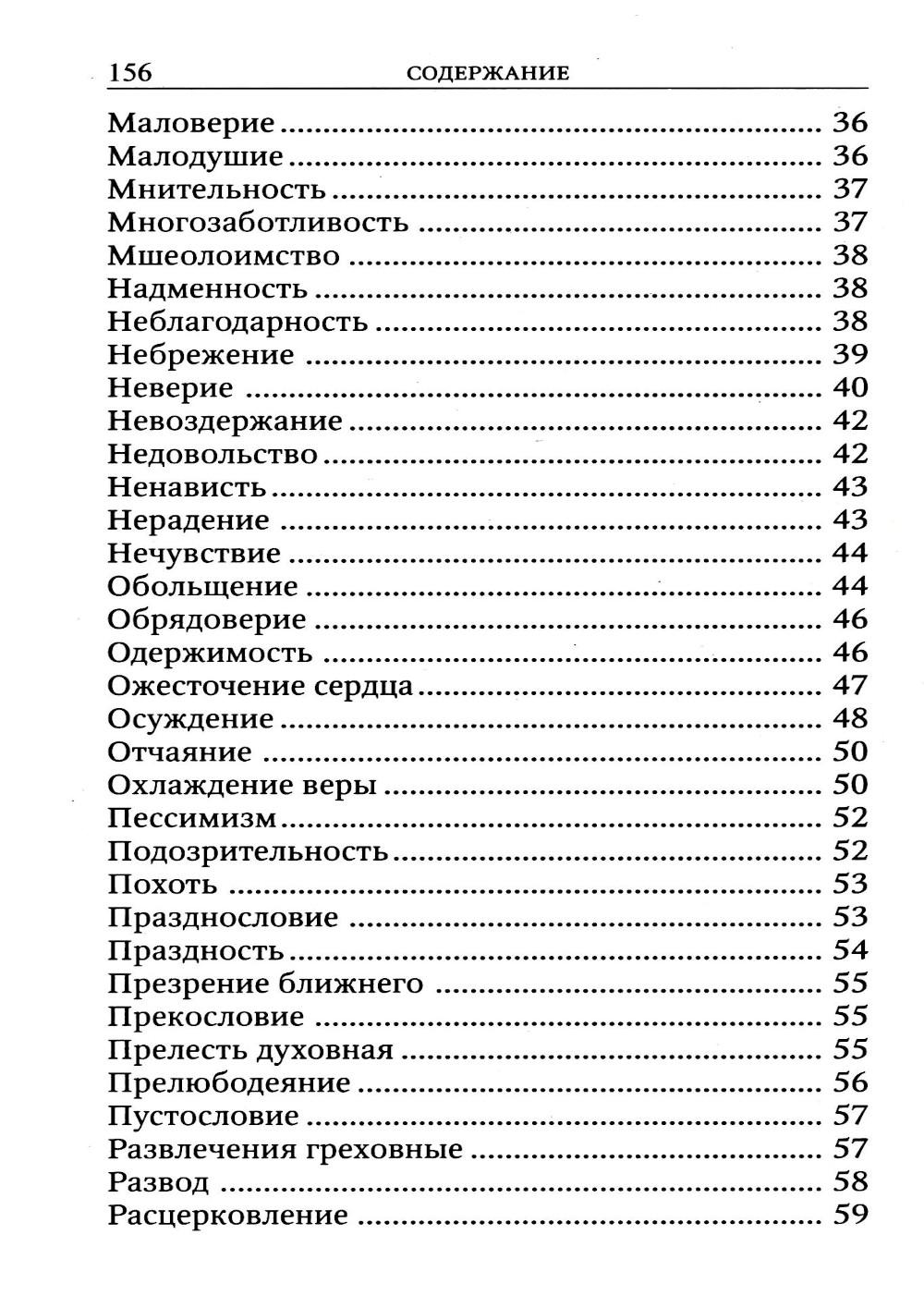 Основу книги составляют два больших раздела. В первом приводятся в алфавитном порядке описания грехов, страстей, негативных состояний души; во втором - добродетелей. В начале книги помещены статьи, дающие общее представление о грехе, страстях, самопознании, покаянии и исповеди. В приложении приводятся высказывания святых отцов о покаянии. Цель издания - помочь читателю яснее увидеть и осознать свои грехи и греховные страсти, а также те добродетели, которых у него нет и которые надо постараться стяжать, а если они есть, то хранить их, не окрадывать самолюбованием и человекоугодием. Книга написана простым языком, имеет катехизическую направленность и предназначена в первую очередь для тех, кто только начал свой путь ко Христу и желает больше узнать о духовной жизни. Издание может оказаться полезным и для тех, кто уже многие годы живет церковной жизнью, но не уделяет достаточного внимания самопознанию.| Издательство | Скрижаль |
