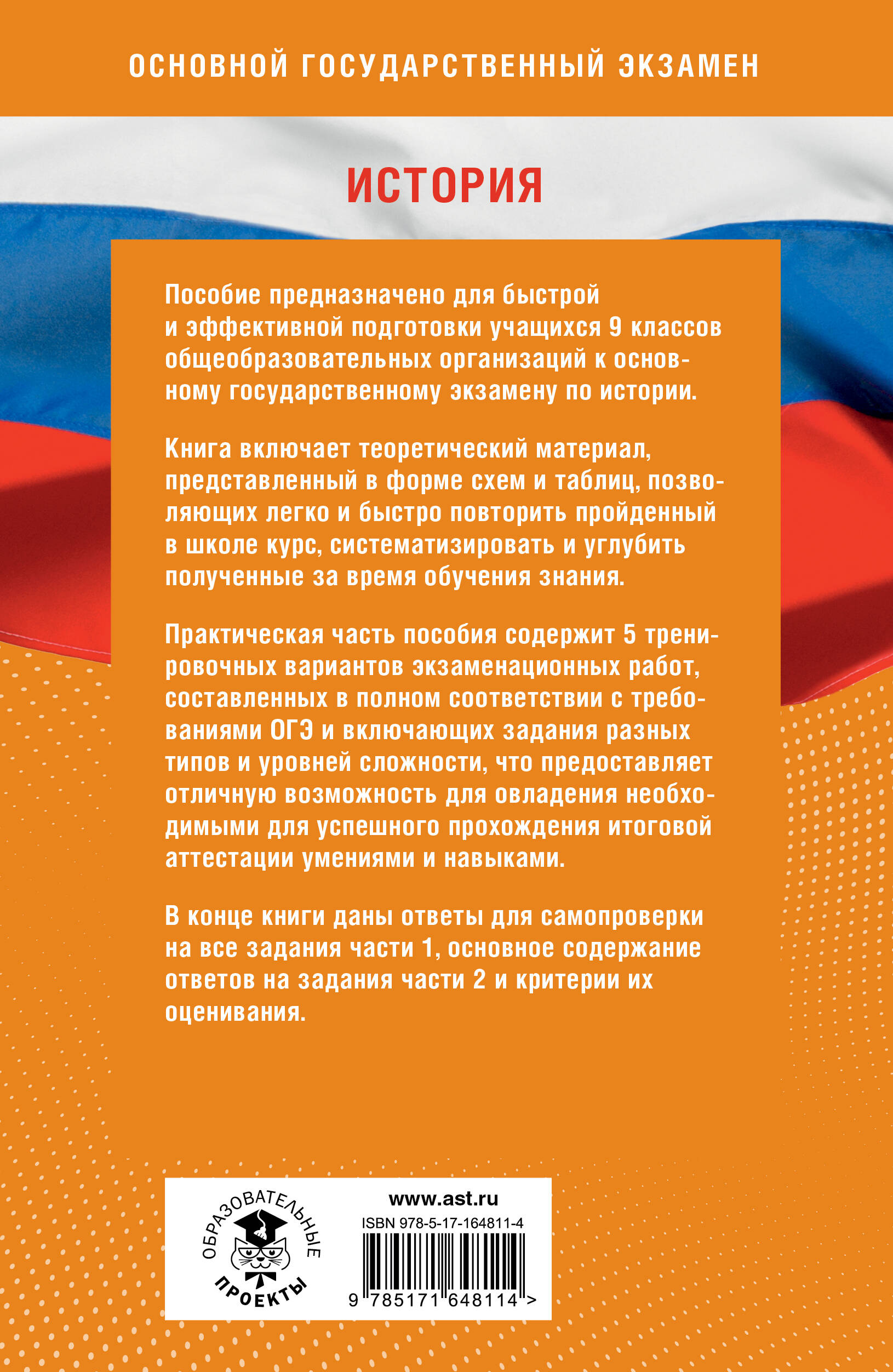 Пособие предназначено для быстрой и эффективной подготовки учащихся 9 классов общеобразовательных организаций к основному государственному экзамену по истории. Книга включает теоретический материал, представленный в форме схем и таблиц, позволяющих легко и быстро повторить пройденный в школе курс, систематизировать и углубить полученные за время обучения знания. Практическая часть пособия содержит 5 тренировочных вариантов экзаменационных работ, составленных в полном соответствии с требованиями ОГЭ и включающих задания разных типов и уровней сложности, что предоставляет отличную возможность для овладения необходимыми для успешного прохождения итоговой аттестации умениями и навыками. В конце книги даны ответы для самопроверки на все задания части 1, основное содержание ответов на задания части 2 и критерии их оценивания.