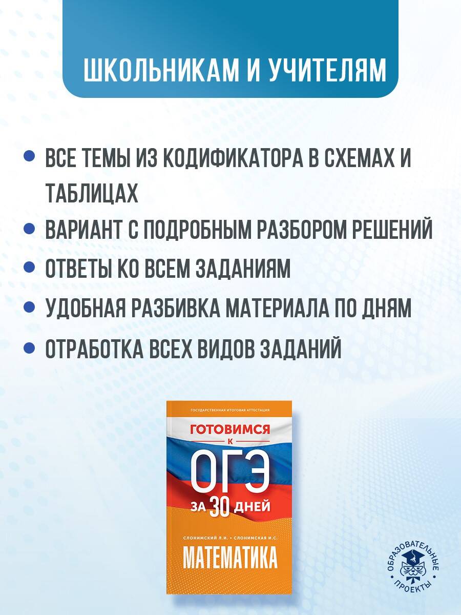 Аннотация: Готовимся к ОГЭ за 30 дней. Математика