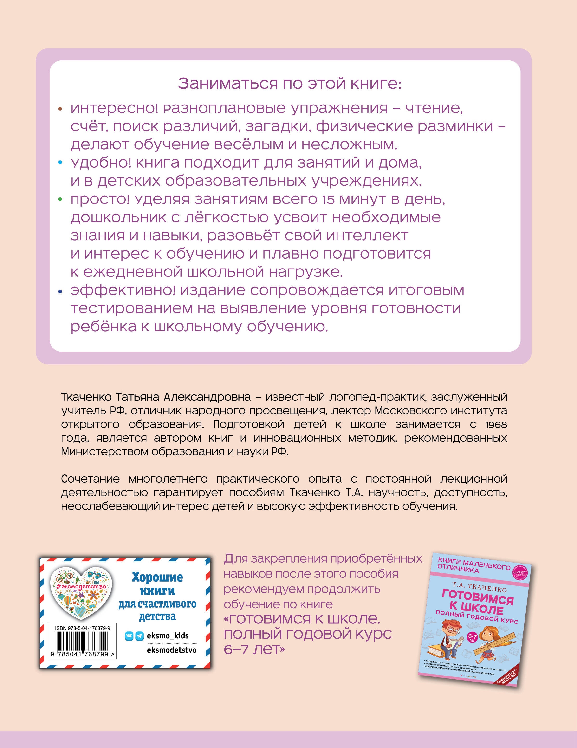 Новое иллюстрированное пособие по системе Ткаченко постепенно знакомит дошкольника с основами чтения, письма и простого счета, обеспечивает спокойное и равномерное вовлечение ребенка в учебу, а родителю и педагогу облегчает процесс преподавания. Вы больше не будете ломать голову, как заранее подготовить ребенка к школе. Учитесь с удовольствием вместе с книгой Татьяны Ткаченко. После освоения первых шагов есть курс для детей 6-7 лет - для тех ребят, кто уже вот-вот отправится в школу или уже начал обучение в ней. «Чтобы вести ребенка за собой, нужно встать не впереди, а рядом с ним», - считает Татьяна Ткаченко, логопед высшей квалификационной категории и заслуженный учитель РФ. Пособия, разработанные для подготовки дошкольников, уже успели завоевать любовь родителей и педагогов по всей России. Татьяна Ткаченко воспитала не одно поколение дошколят и вашему ребенку поможет качественно подготовиться к школе с помощью комплекта из 5 книг-пособий. • Полные годовые курсы, включающие все необходимое для подготовки к школе. • Занятия длятся 15 минут - оптимальный объем для постепенного приучения дошкольника к нагрузке. • Структурированная информация, постепенное нарастание сложности. • Комплексная система, проверенная не одним поколением дошколят. Тэги: подготовка ребенка к школе, логопедический букварь, первый раз в первый класс, ранняя грамотность, игры для детей 5-6 лет.| Издательство | ООО "Издательство "Эксмо" |