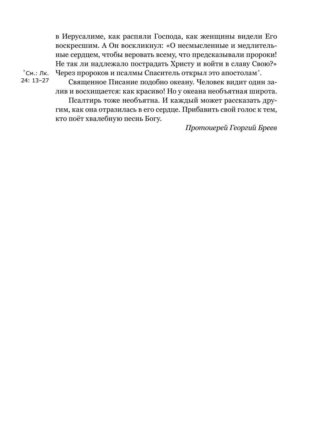Книга известного московского протоиерея Георгия Бреева (1937-2020) посвящена размышлениям о псалмах. Отец Георгий много лет служил настоятелем храма Рождества Пресвятой Богородицы в Крылатском, любил Псалтирь и по-особенному чувствовал, понимал ее глубину. Он называл Псалтирь высшей школой духовного просвещения, рассказывал о псалмах так, что они, пройдя века, становятся очень современными, злободневными для нас, обращают душу человека к вечности. Это четвёртая книга отца Георгия, написанная вместе с журналистом и писателем Наталией Голдовской.| Издательство | Изд. НИКЕЯ |