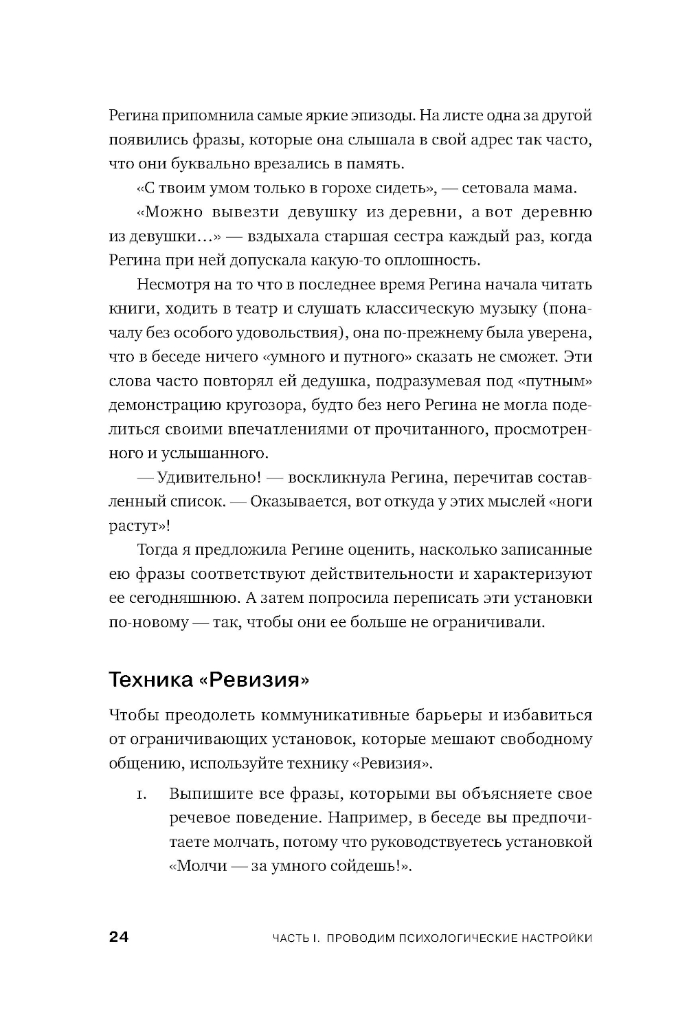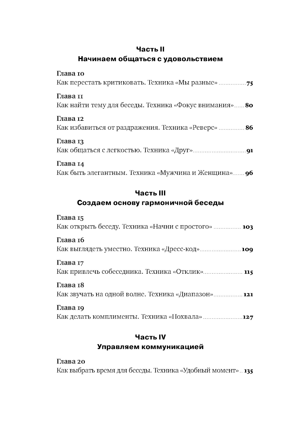 Никто не рождается блестящим оратором и интересным собеседником, но коммуникативными навыками можно легко овладеть. Эта книга поможет преодолеть барьеры в общении и уверенно вести разговор в любых обстоятельствах. Надежда делится 56 проверенными техниками, которые пригодятся всем, кто хочет легко заводить знакомства, управлять беседой, находить аргументы в спорах, избегать неловких ситуаций и производить нужное впечатление. Выполняя практические упражнения в конце каждой главы, вы можете превратиться в настоящего мастера общения, а на пути к новым возможностям вас будут сопровождать пять героев книги, истории которых станут примером, как можно справиться с любыми трудностями в общении.
