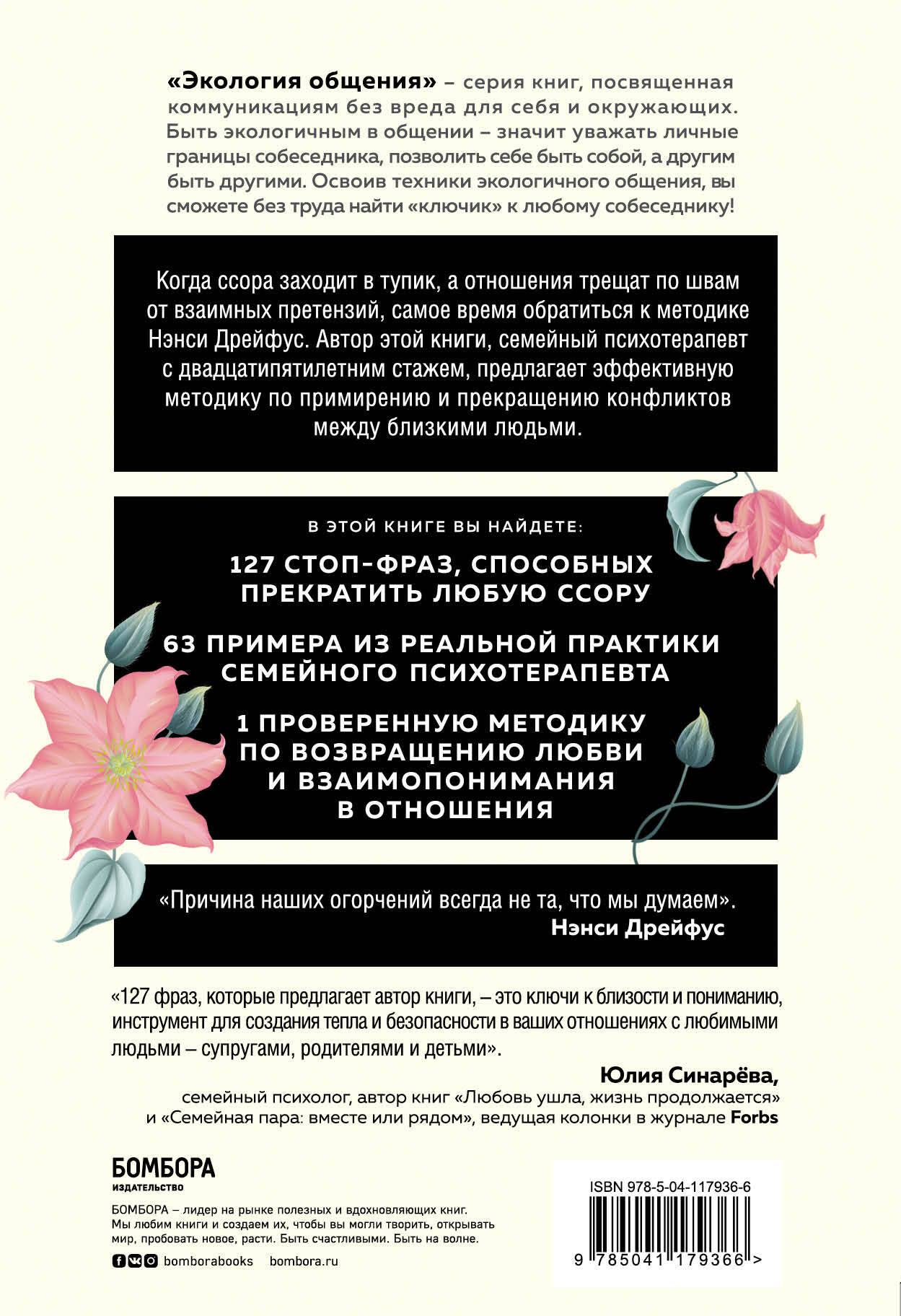 Главное в отношениях - находить выход из конфликтов. Эта книга содержит 127 стоп-фраз, способных остановить любую ссору. А также разбор более 60 примеров конфликтных ситуаций из реальной практики семейного психотерапевта с 25-летним стажем. Когда ссора заходит в тупик, а отношения трещат по швам от взаимных претензий, самое время обратиться к методике Нэнси Дрейфус. Автор этой книги предлагает почти магический инструмент по прекращению конфликтов между близкими людьми.| Издательство | ООО "Издательство "Эксмо" |