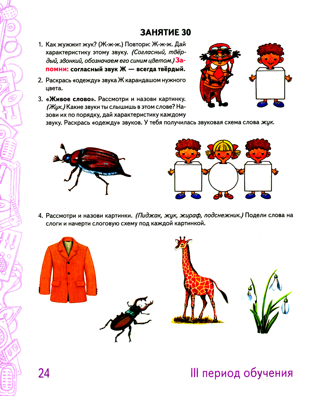 Альбом предназначен для работы с детьми 5-6 лет с общим недоразвитием речи (ОНР). В ходе выполнения предлагаемых игровых упражнений, дети познакомятся с некоторыми звуками русского языка, научатся проводить звуковой анализ и синтез простых слов, разовьют фонематический слух и восприятие. Альбом адресован родителям детей с речевыми нарушениями, воспитателям логопедических групп.