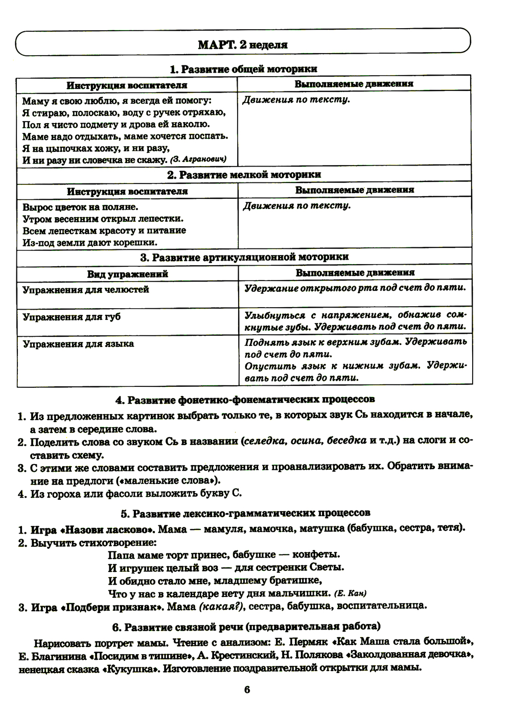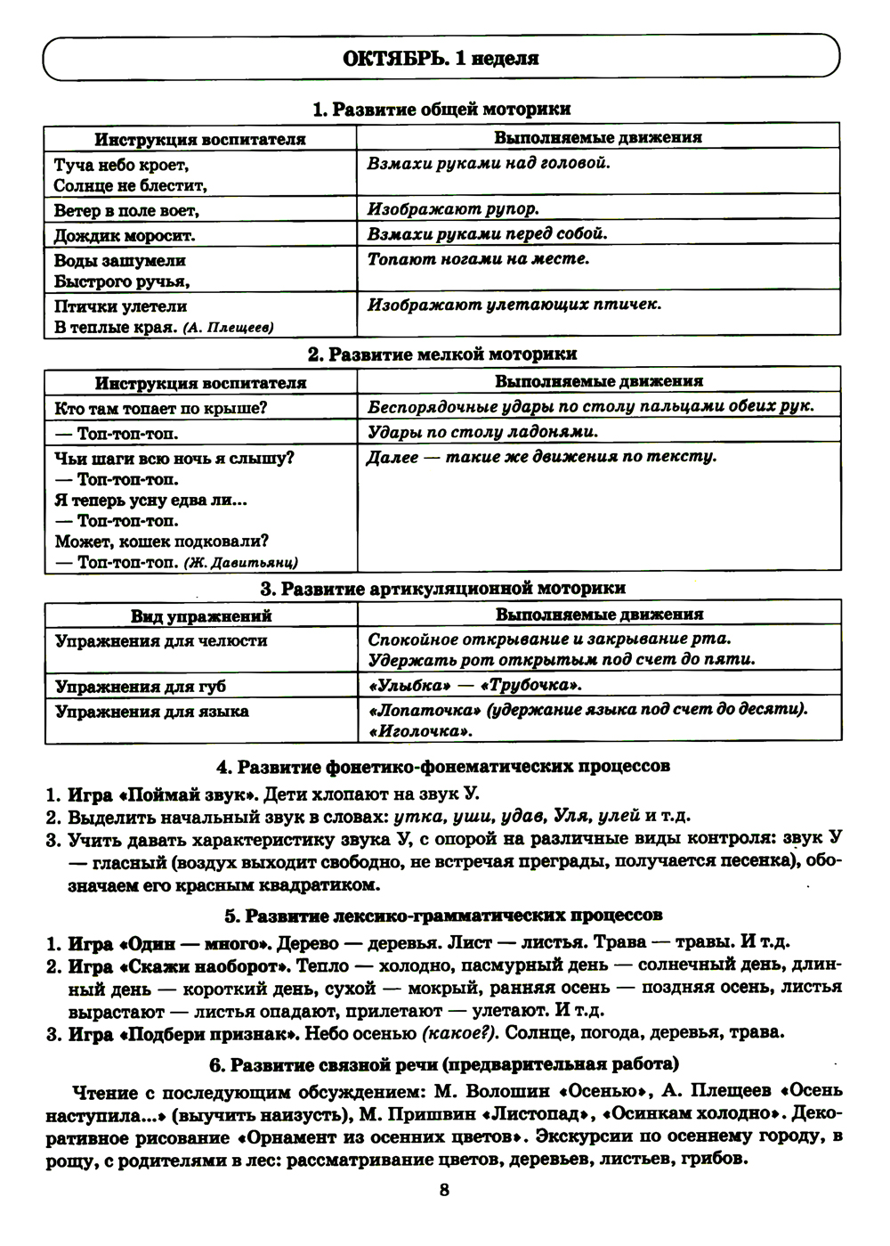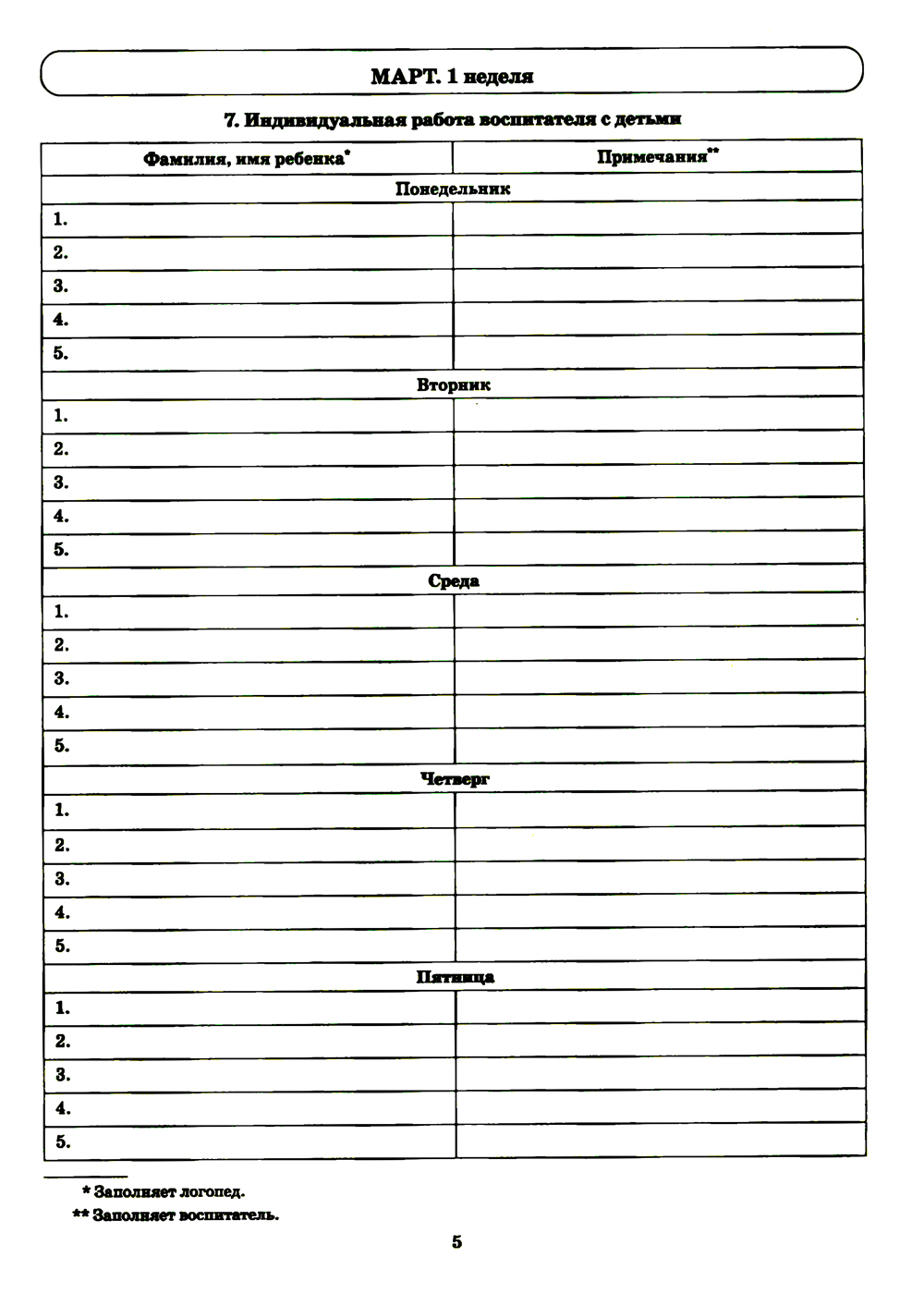 Материалы, содержащиеся в данной тетради, помогут организовать понедельную работу воспитателей по заданию логопеда в первом периоде обучения и провести эффективную коррекционную работу с детьми старшей логопедической группы. Задания подобраны по степени возрастающей сложности на материале одной лексической темы и содержат упражнения для развития общей, артикуляционной и мелкой моторики, речевого дыхания, голоса, произношения и обучения детей грамоте. Адресована логопедам и воспитателям логопедических групп.| Издательство | Гном |