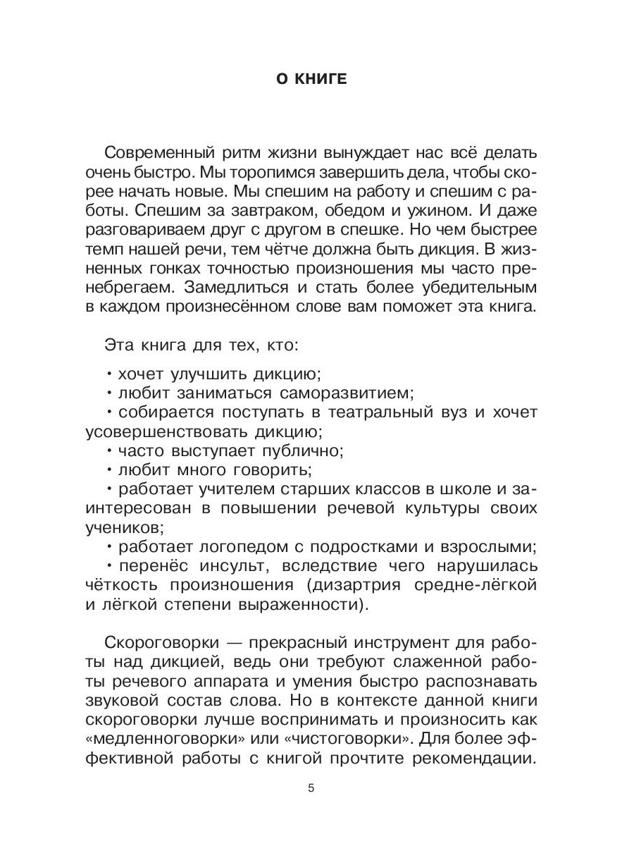 Пособие адресовано логопедам, тренерам по технике речи и публичным выступлениям, работникам телевидения и радио, театральным педагогам, студентам театральных вузов, а также всем, кто любит самосовершенствоваться или хочет сделать свою речь лучше.