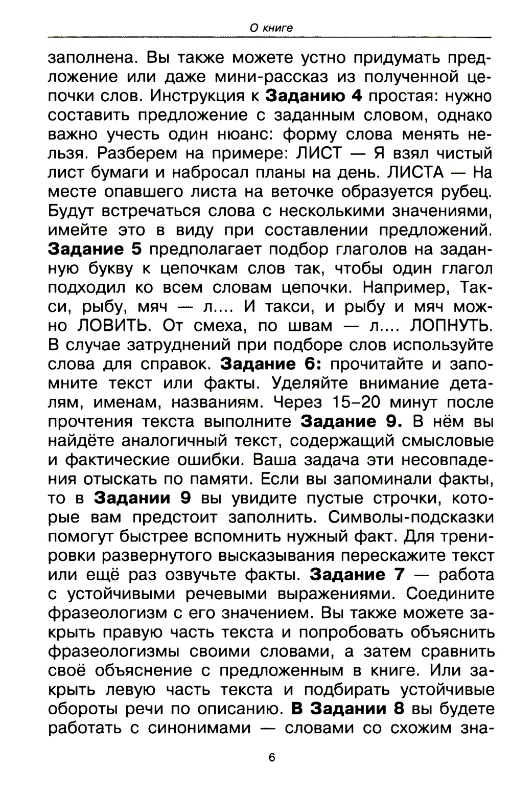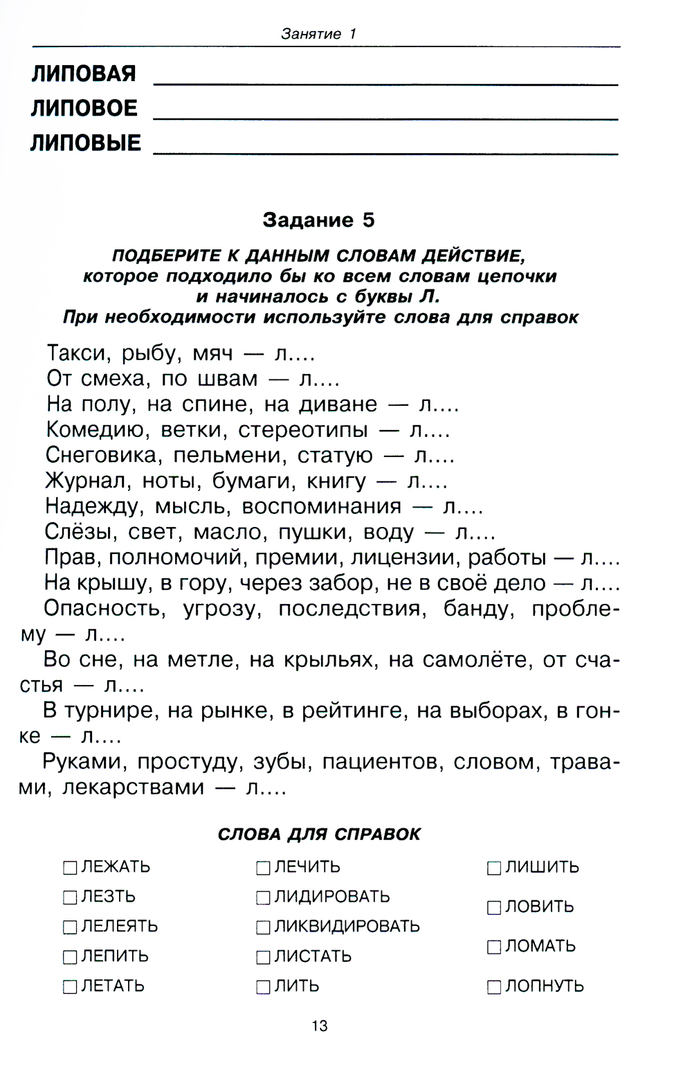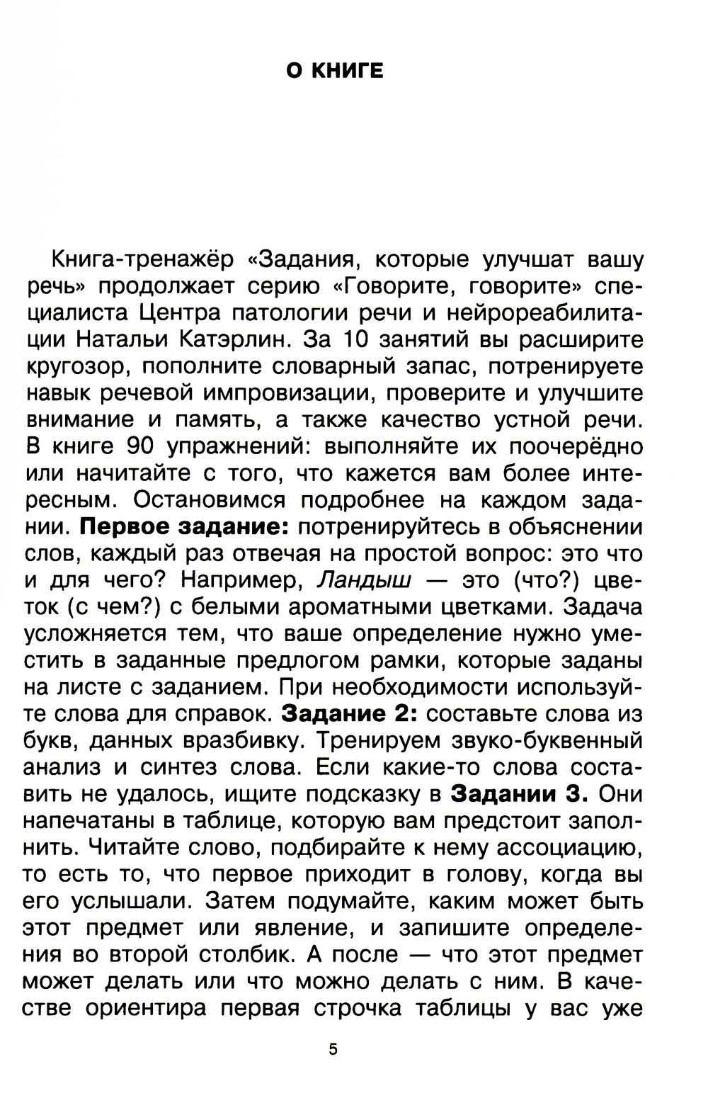 Во второй части пятой книги серии «Говорите, говорите» собраны задания, которые помогут расширить кругозор, пополнить словарный запас, потренировать навык речевой импровизации, улучшить внимание, память и качество устной речи. Здесь даны задания на буквы Л-Ф. Книга полезна не только тем, кто любит самосовершенствоваться. Она также будет хорошим помощником людям, имеющим незначительные затруднения в речи вследствие перенесённого инсульта или других заболеваний головного мозга. Материалы книги подходят специалистам (логопедам, нейропсихологам) в работе с пациентами, имеющими афазию лёгкой и средне-лёгкой степени выраженности, дизартрические расстройства или нарушения нейродинамического компонента психической деятельности.