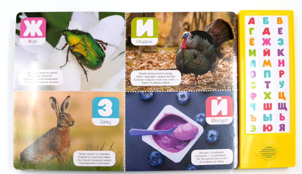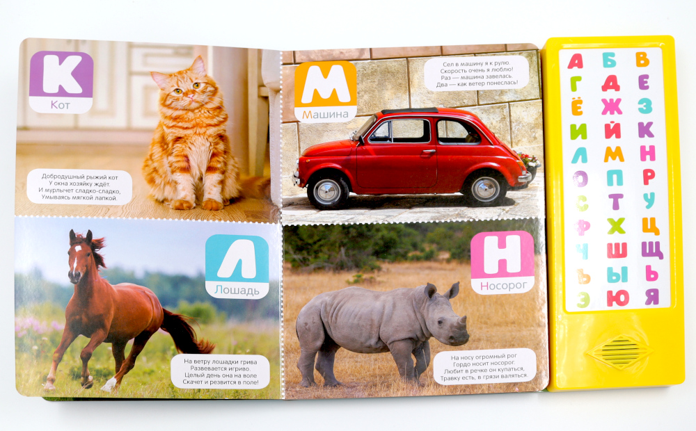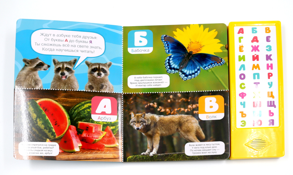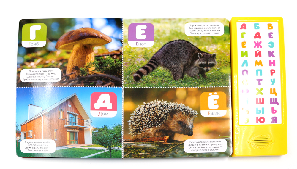 «Говорящая азбука» - это книга, которая позволяет в игровой форме выучить с ребенком весь алфавит. Нажимая на кнопки, вы услышите звуки, которые обозначают буквы, а не их названия. Такая методика в дальнейшем облегчает процесс обучения чтению. На все 33 буквы подобраны понятные малышу слова, забавные стихотворения и яркие фотографии. С «Говорящей азбукой» учиться интереснее и веселее!| Издательство | Мозаика-Синтез |