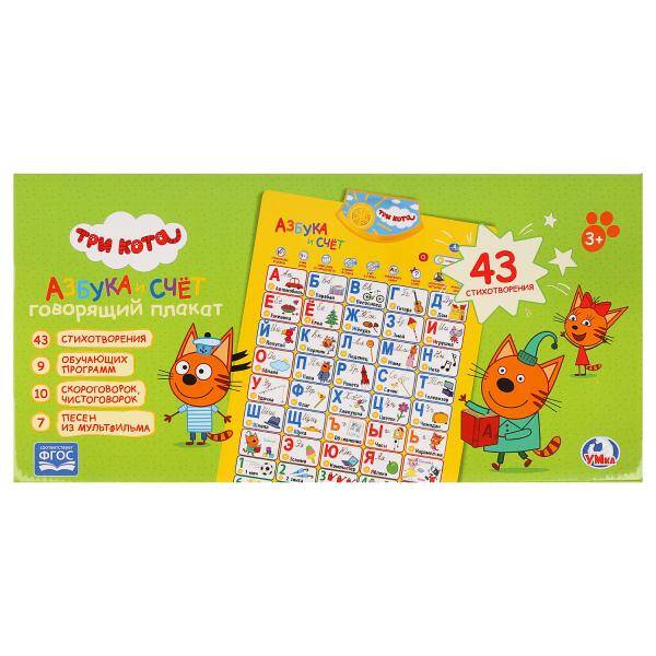 Говорящий плакат.Азбука и счет "Три Кота" в стихах,10 скороговорок,7 песен в кор. "Умка" в кор.48шт