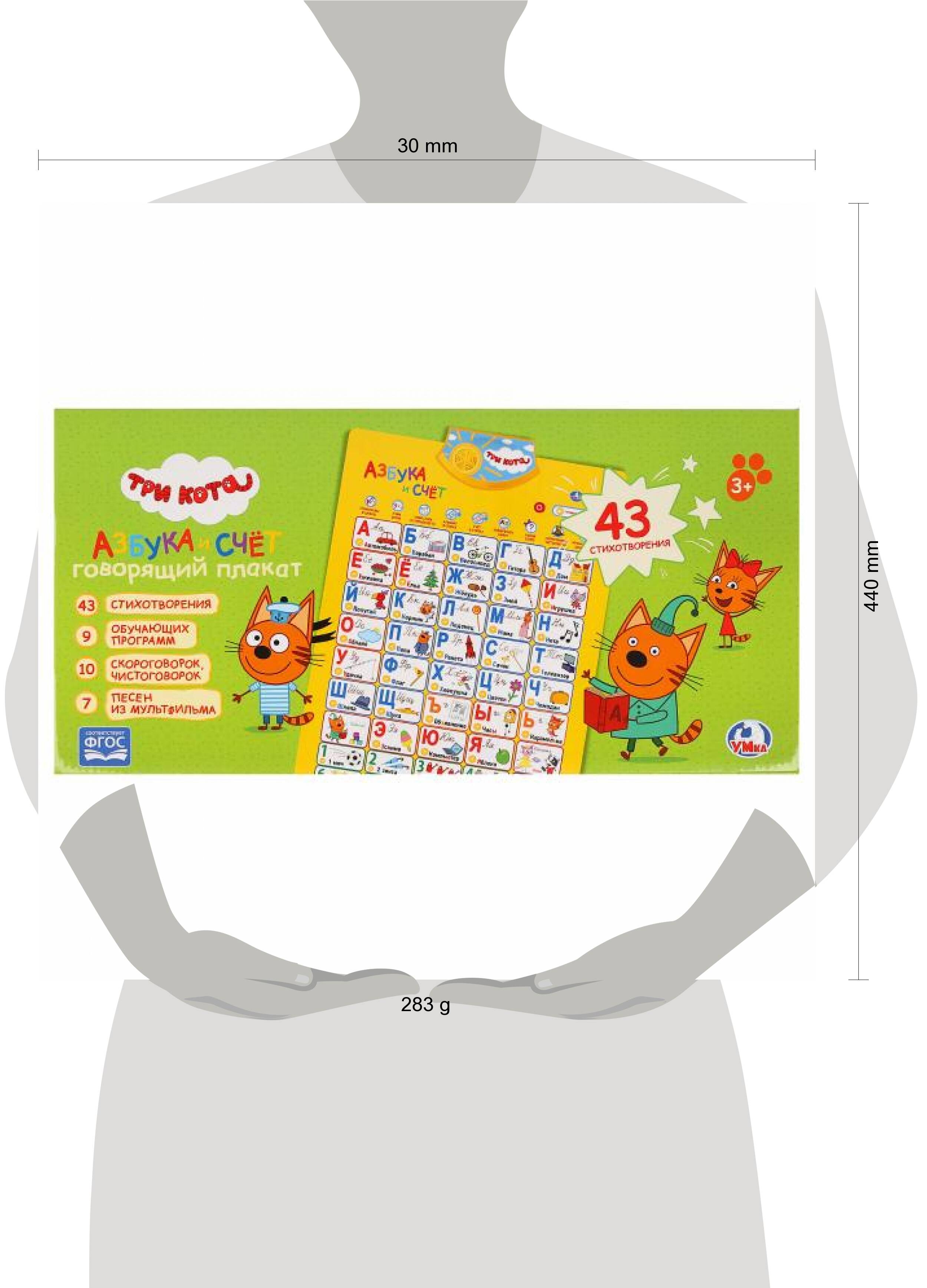 Аннотация: Говорящий плакат.Азбука и счет "Три Кота" в стихах,10 скороговорок,7 песен в кор. "Умка" в кор.48шт