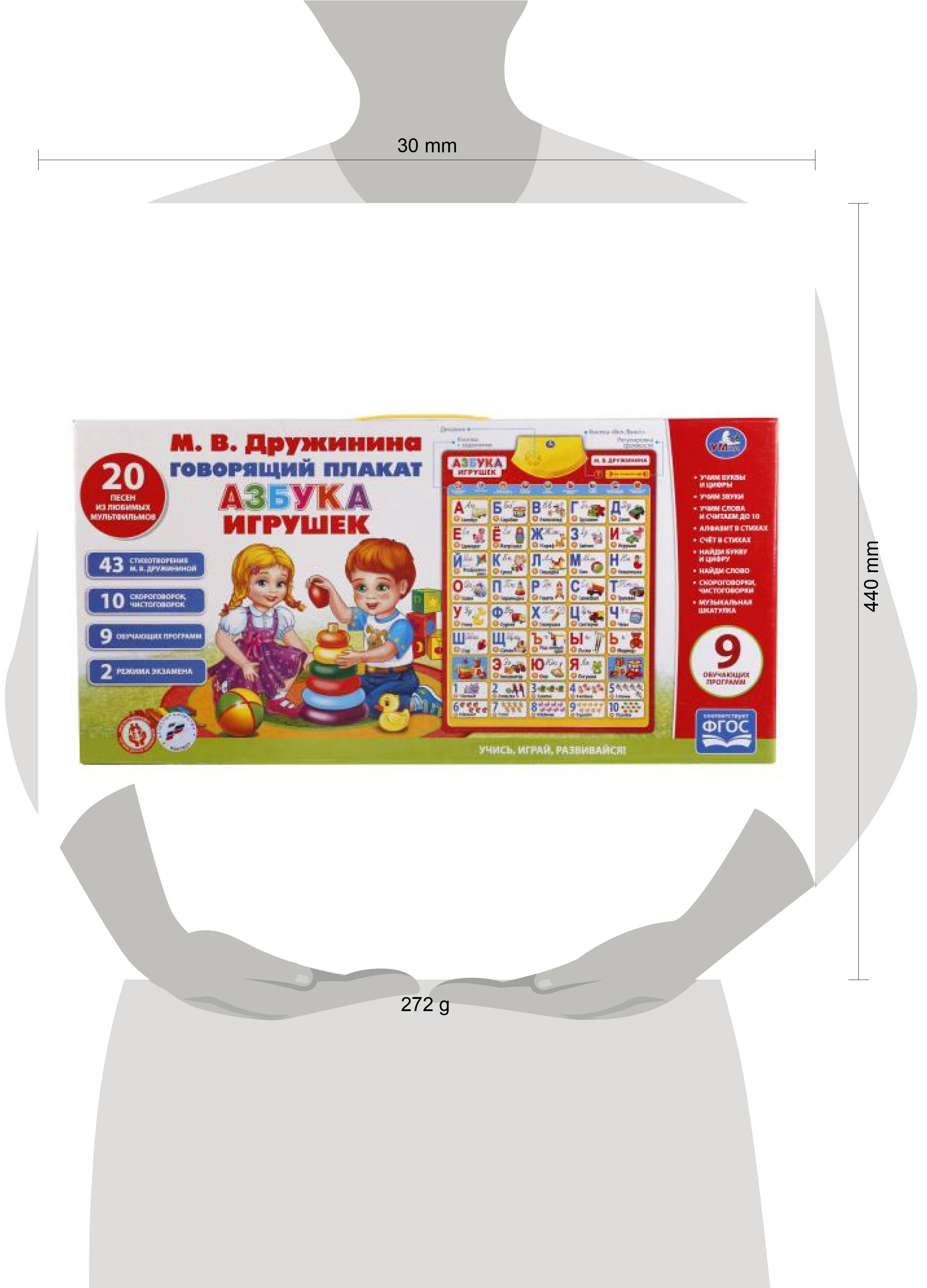 Аннотация: Говорящий плакат ДРУЖИНИНА азбука.100 песен,звуков,скороговорок,стихов.кор.бат. Умка в кор.30шт