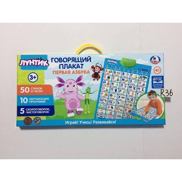 Аннотация: Говорящий плакат.Первая Азбука Лунтик, на бат. руссифиц. 50 стихов,5 скороговорок.ТМ"УМКА"в кор.48шт
