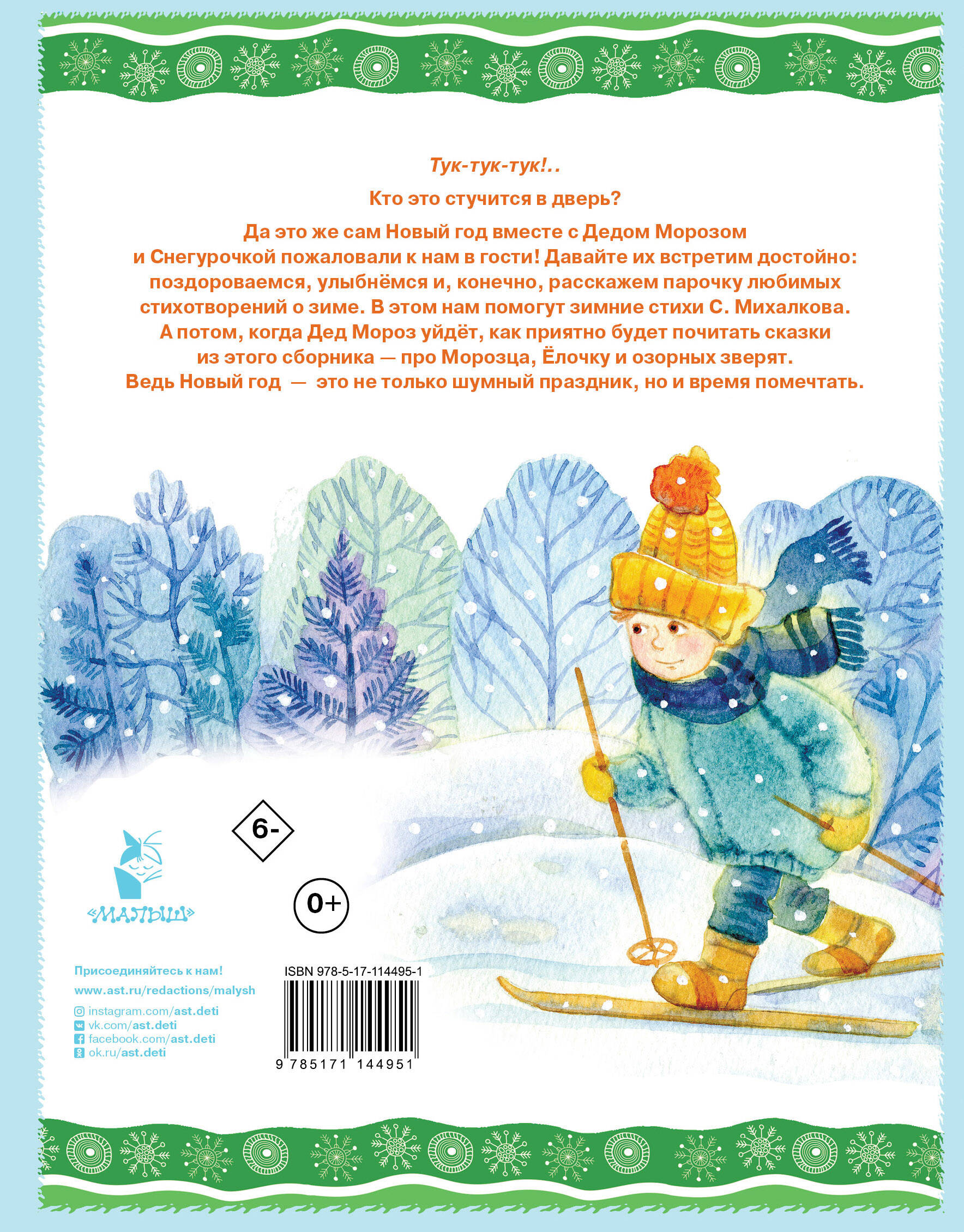 Книга "Говорят: под Новый год…" - это сборник произведений Сергея Михалкова, про зиму и Новый год. В издание вошли популярные новогодние стихотворения: "Под Новый год", "Ёлка", "Событие", "Белые стихи", сказки "Мороз и Морозец", "Ёлочка". Впервые спустя полвека издаётся сказка про Медвежонка-лежебоку под названием "Любишь кататься, люби и саночки возить". Книга впервые издаётся с новыми иллюстрациями художницы Светланы Емельяновой. Для старшего дошкольного возраста.| Издательство | Издательство "АСТ" |