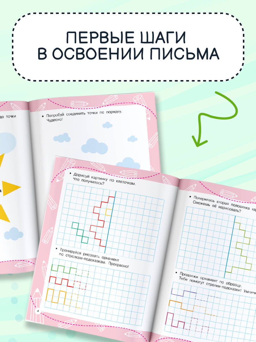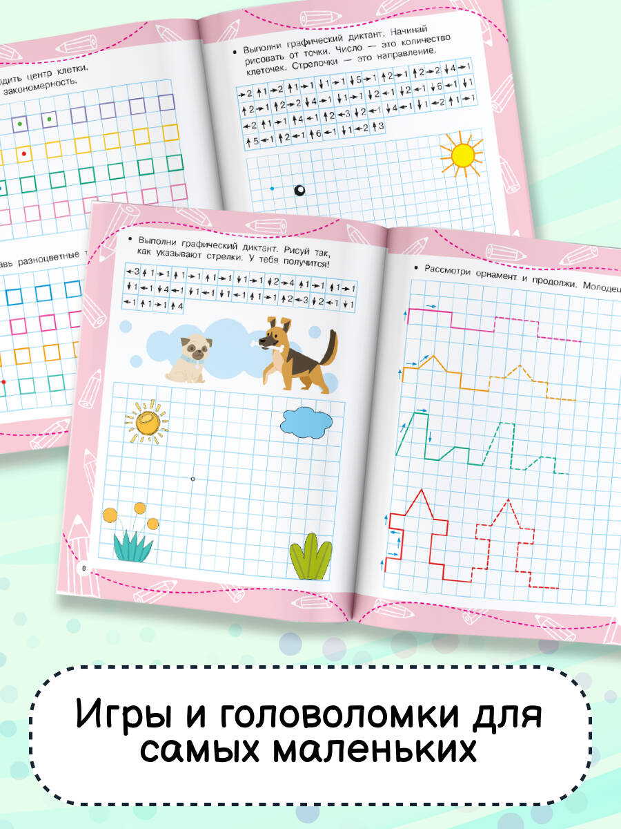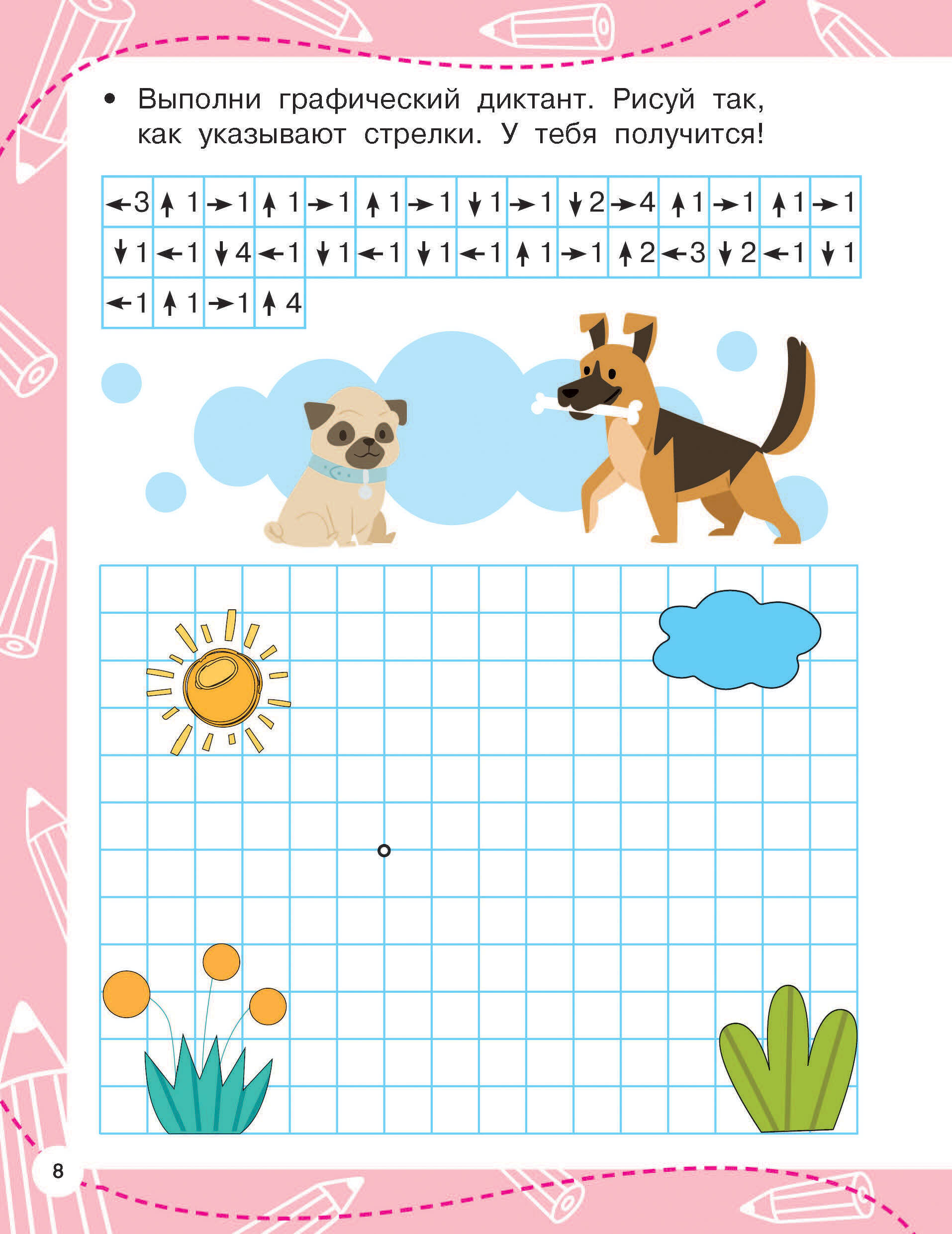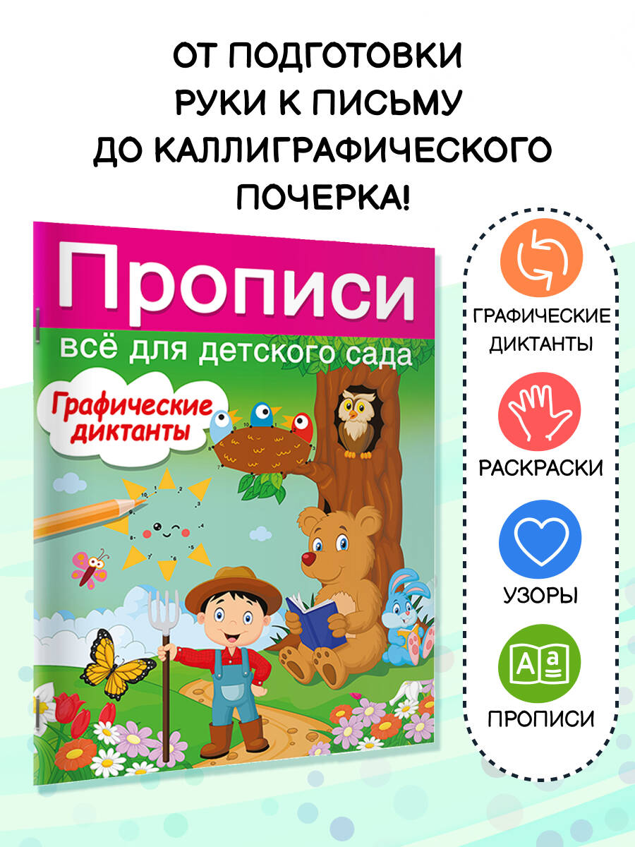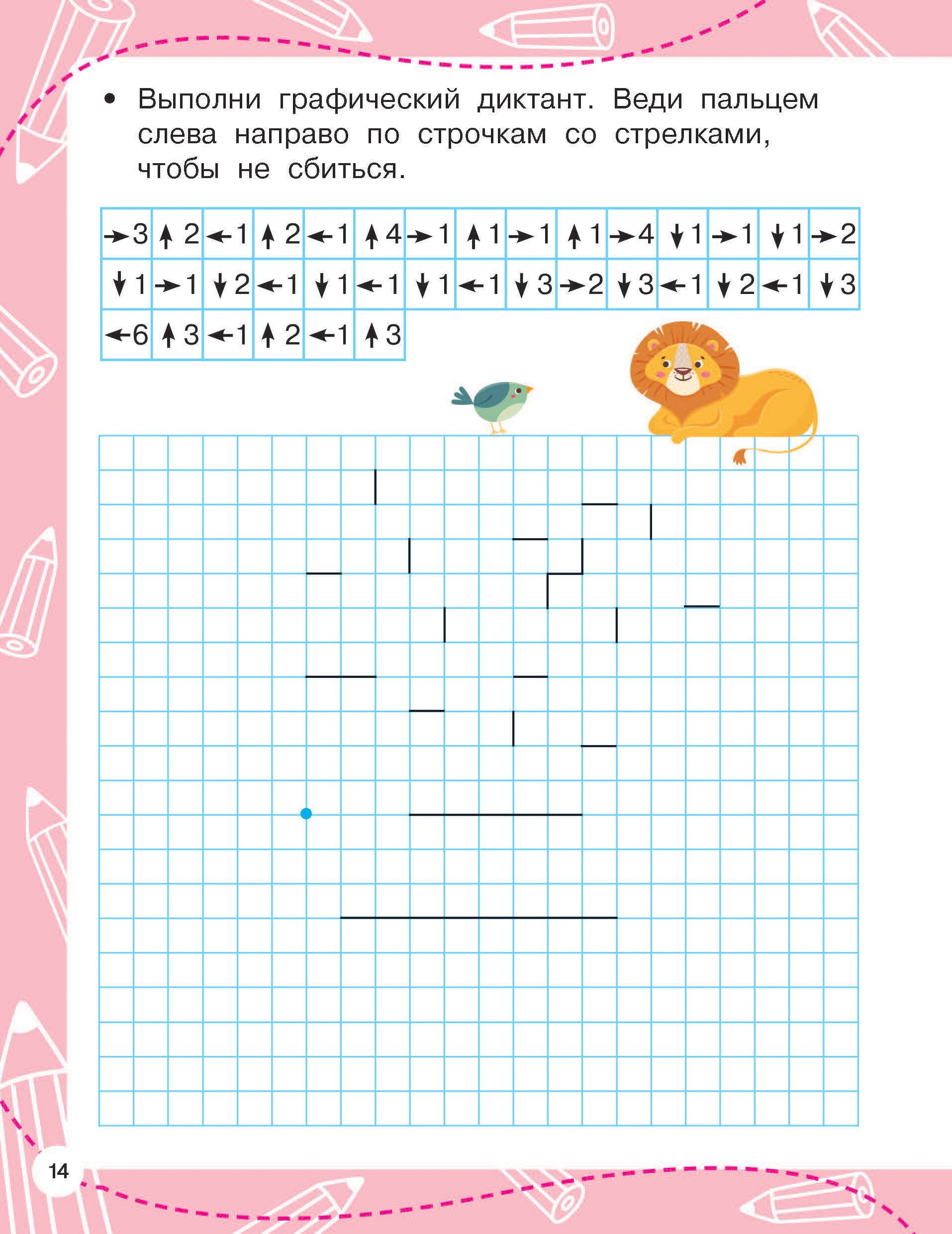 Вашему малышу скоро в школу? Тогда наша книга «Графические диктанты» - лучший подарок будущему первокласснику! Задания, собранные в ней, превратят учёбу в увлекательную игру и помогут ребёнку развить зрительную память, пространственное мышление, мелкую моторику и координацию движений. Книга составлена согласно ФГОС и с учётом всех физических и психоэмоциональных особенностей ребёнка. Плотная белая бумага, крупные клетки, цветные иллюстрации, занимательные игровые задачки, - всё это о нашей книге. Книга будет интересна будущим первоклассникам и их родителям. • Занимательные задания разного уровня сложности. • Малыш научится копировать рисунки по клеточкам, рисовать орнаменты и картинки. А помогут им в этом пошаговые инструкции, похожие на карты сокровищ (увидеть в итоге свой рисунок - чем не сокровище?) • Ребёнок, рисуя по клеточкам, знакомится с понятиями «вниз», «вверх», «влево», «вправо», «по диагонали». • Чудесные цветные иллюстрации сделают процесс обучения ещё увлекательнее. • Развивается координация движений, внимание и мышление. • Формируется усидчивость и целеустремлённость. Издание входит в комплект «Прописи: учимся в детском саду», включающий в себя также книги: «Первые задачки для малышей», «Печатные буквы», «Цифры: пишем правильно», - каждая из которых напечатана на качественной офсетной бумаге и содержит 16 страниц с заданиями и цветными иллюстрациями.| Издательство | Издательство "АСТ" |