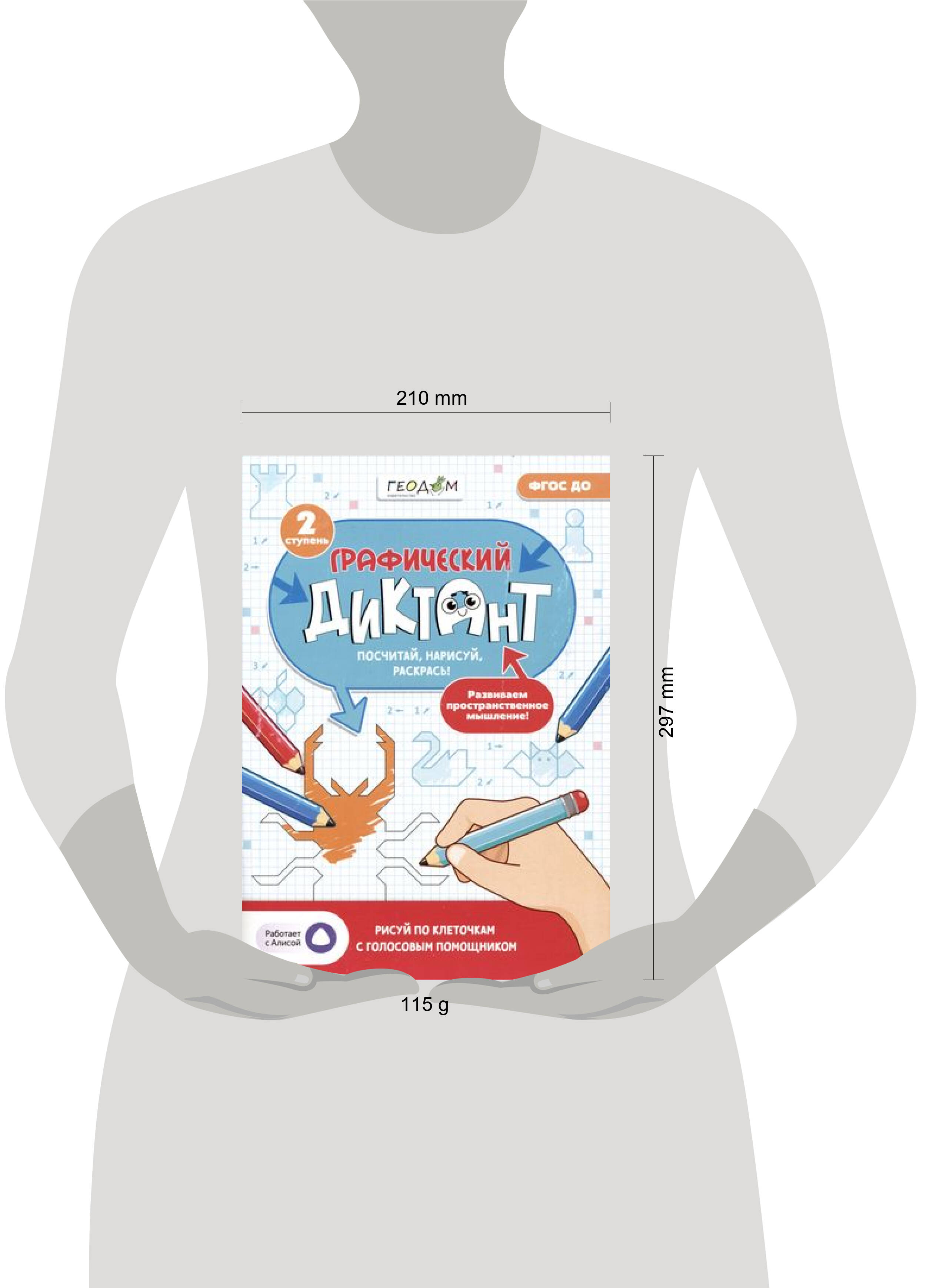Первый графический диктант, который работает с Алисой - голосовым помощником Яндекса! Задания даны по принципу от простого к сложному: двигайтесь по схеме или под диктовку Алисы, раскрашивайте рисунки - и учитесь весело и интересно. Выполняя задания графического диктанта, ребёнок учится считать и ориентироваться в пространстве, развивает мелкую моторику и память. Рекомендованный возраст: 7+.| Издательство | ГеоДом ООО |
