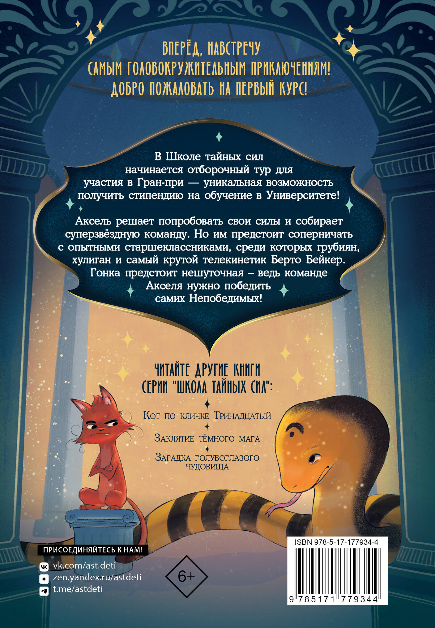 В Школе тайных сил начинается отборочный тур для участия в Гран-при - уникальная возможность получить стипендию на обучение в Университете! Аксель решает попробовать свои силы и собирает суперзвёздную команду. Но им предстоит соперничать с опытными старшеклассниками, среди которых грубиян, хулиган и самый крутой телекинетик Берто Бейкер. Гонка предстоит нешуточная - ведь команде Акселя нужно победить самих Непобедимых!| Издательство | Издательство "АСТ" |