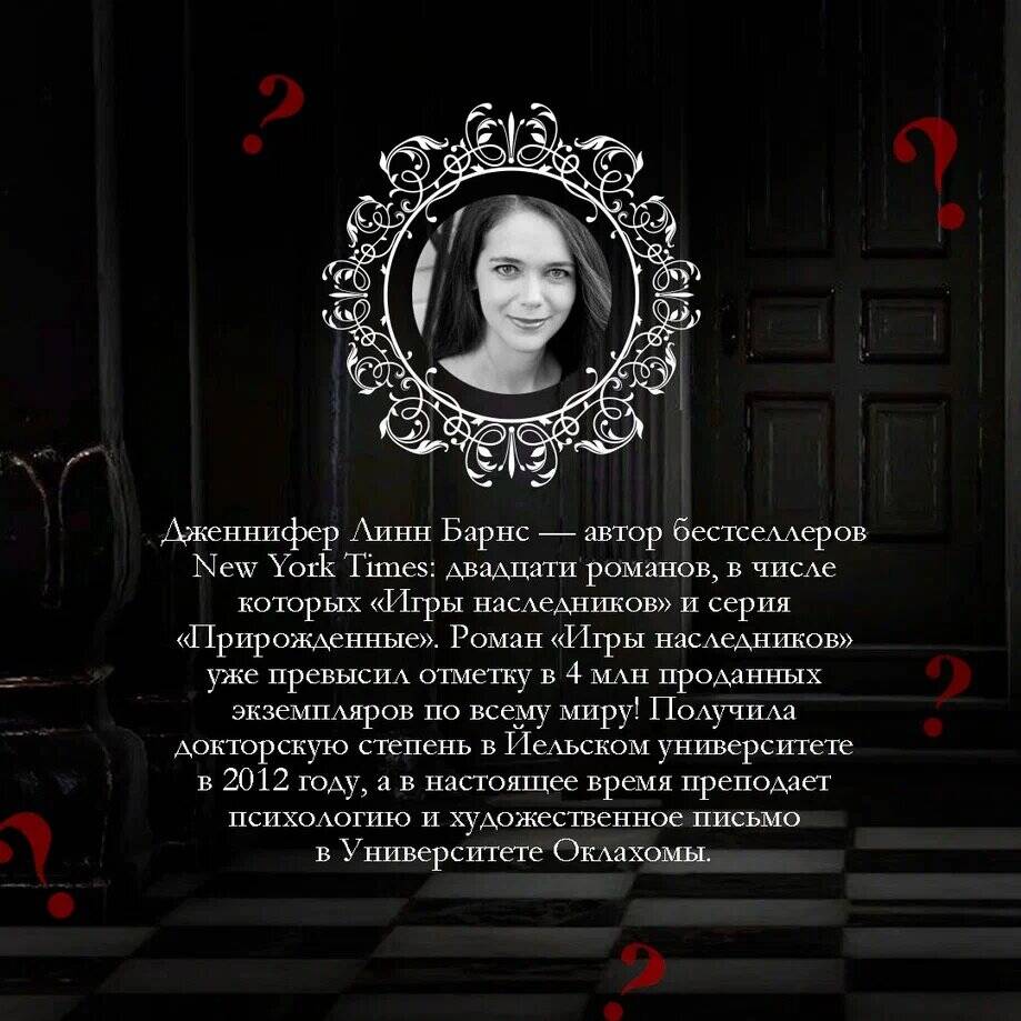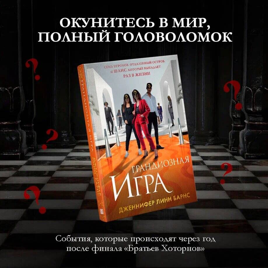 Новый цикл от автора мирового бестселлера «Игры наследников»! Более 4 млн проданных экземпляров! Окунитесь в мир, полный головоломок, события в котором происходят через год после финала «Братьев Хоторнов». Невероятные приключения, новые тайны и борьба за миллионы ждут новых героев! Кто сорвет куш? Да начнется «Грандиозная игра»! Топ-10 бестселлеров The New York Times и USA Today. «Грандиозная игра» - ежегодное масштабное соревнование, которое проводят братья Хоторны и Эйвери Грэмбс, унаследовавшая состояние эксцентричного миллиардера. Эта игра была создана специально для того, чтобы дать каждому возможность получить славу и несметные богатства. В этом году участвовать смогут только семь человек. Кто-то из них играет ради денег. Кто-то ради власти. У кого-то свои причины. Но у каждого из них есть секреты. И не все готовы играть по правилам. Ведь когда на кону двадцать шесть миллионов долларов, участники пойдут на все ради победы. Идеально подойдет для поклонников оригинальной серии «Игры наследников», фильма «Достать ножи», сериала «Дом ключей», а также творчества Карен М. Макманус и Морин Джонсон. Об авторе Дженнифер Линн Барнс - автор бестселлеров New York Times: двадцати романов, в числе которых «Игры наследников» и серия «Прирожденные». Получила докторскую степень в Йельском университете в 2012 году, а в настоящее время преподает психологию и художественное письмо в Университете Оклахомы. Обладательница стипендии Фулбрайта, в своей научной деятельности специализируется на психологии, психиатрии и когнитивных науках.| Издательство | ООО "Издательство "Эксмо" |
