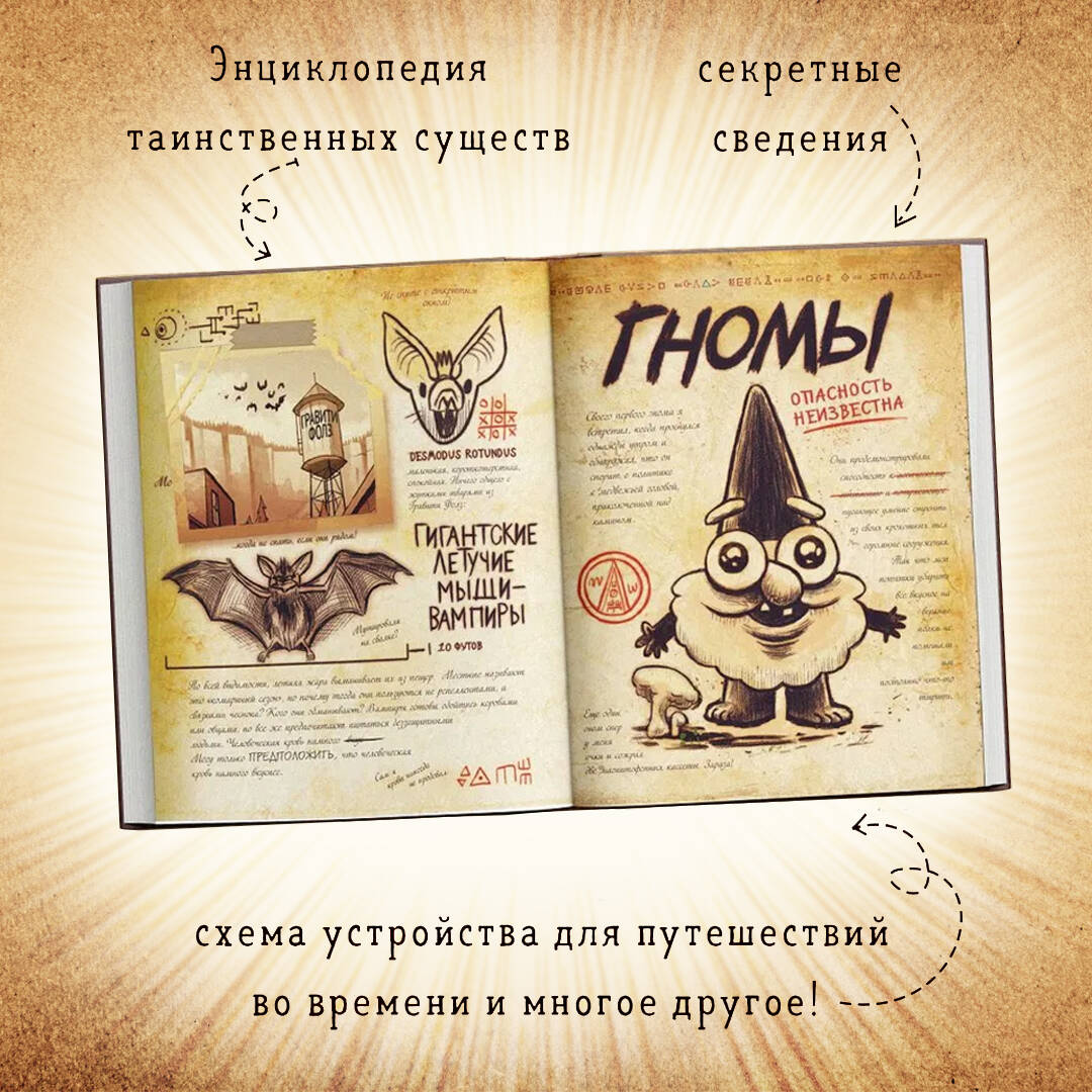 Этот удивительно красивый комплект из 2-х книг - «Дневник-3» и «Дневник Диппера и Мэйбл» - станет прекрасным подарком для юного читателя, обожающего «Гравити Фолз», а также тайны и загадки. «Дневник-3» - это уникальное издание для фанатов анимационного сериала и тех, кто любит тайны и верит, что мир полон загадок. Это тот самый дневник, который фигурирует в сериале и является ключевым для сюжета. В книге можно найти энциклопедию таинственных существ, которые обитают в Гравити Фолз, описание локаций, секретные сведения об обитателях других измерений, и даже схему устройства, помогающего путешествовать во времени. Ещё из «Дневника-3» можно узнать историю приключений брата дяди Стэна, знаменитого путешественника во времени, который и является автором «Дневника»! «Дневник Диппера и Мэйбл» - отличная находка для любителей сериала «Гравити Фолз». Вас ждет незабываемое путешествие по городку Гравити Фолз вместе с Диппером и Мэйбл. Шутки, приколы и веселье нон-стоп! Внутри - яркое оформление. Бонус - плакат любимой музыкальной группы Мэйбл, который можно повесить на стену. Самый популярный мультяшный проект среди детей и взрослых!| Издательство | ООО "Издательство "Эксмо" |