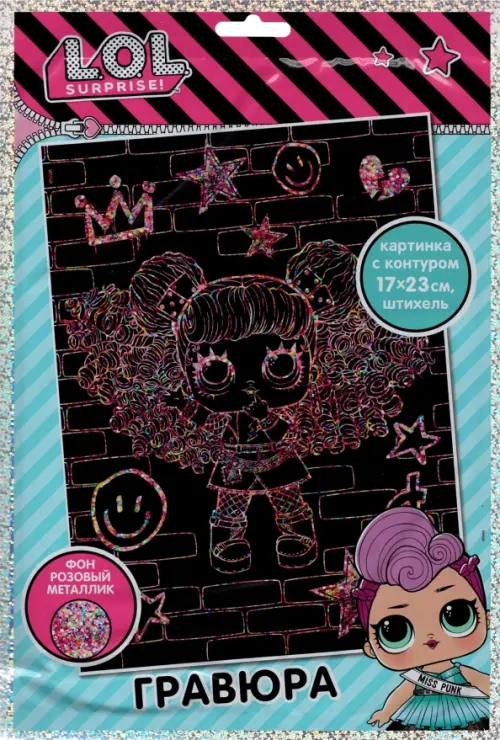 Гравюра - удивительный вид творчества, а с популярными героинями ЛОЛ становится интересным. Собери всю коллекцию ярких изображений, сделанных своими руками у себя дома! Набор для творчества включает в себя: Многослойная основа - металлизированное покрытие с черным грунтом и контурным рисунком для процарапывания сверху.