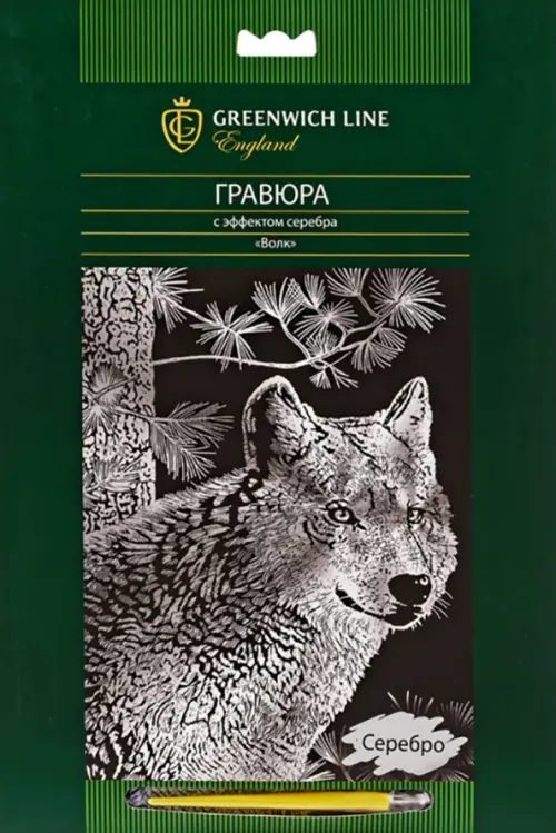 Гравюра с эффектом серебра "Волк", 29,5x21 см