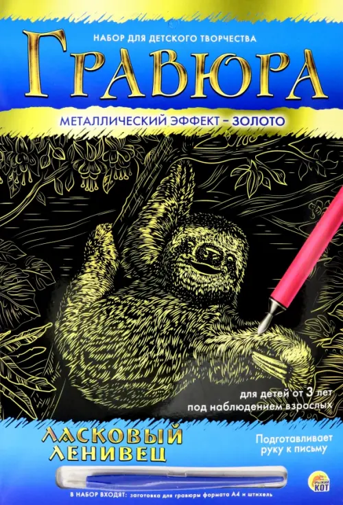 Состав набора: основа с нанесенным контуром, деревянный штихель.