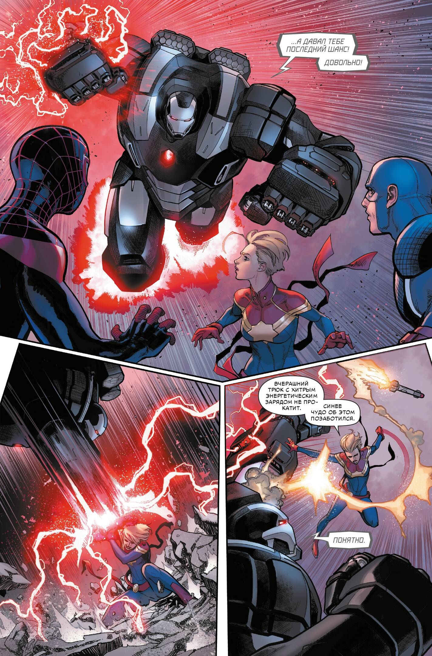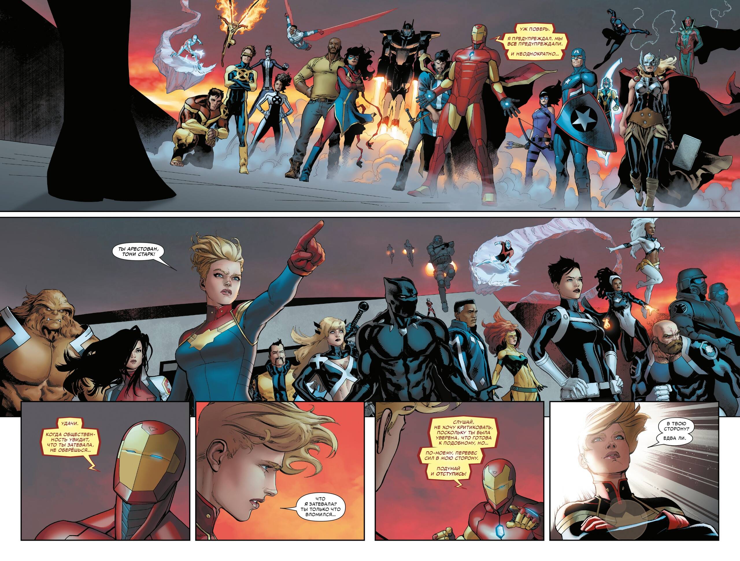 Выбери сторону! Появление нового нелюдя Улисса, способного предсказывать будущее, стало непростым вызовом для защитников Земли. И когда его видение привело к трагедии, старая дружба оказалась на грани раскола из-за невосполнимой утраты: Капитан Марвел и Железный Человек, давние товарищи, встают по разные стороны баррикад. Что значит быть героем? Верно ли наказывать за ещё не совершённые преступления? Оправдывает ли цель средства? И можно ли доверять дару Улисса? Мстители, Люди Икс, нелюди, люди-пауки, Стражи Галактики и многие другие занимают стороны, и разгорается битва. И когда один из величайших героев падёт, вселенная Marvel вновь встанет на пороге войны… но останется ли после неё будущее, достойное спасения? В книгу входят комиксы «Гражданская война II» #0-8 и материалы из выпуска ко «Дню бесплатных комиксов - 2016» («Гражданская война II») #1. Над серией работали Брайан Майкл Бендис, Дэвид Маркес, Джим Ченг, Оливье Куапель, Джон Делл и Джастин Понсор.