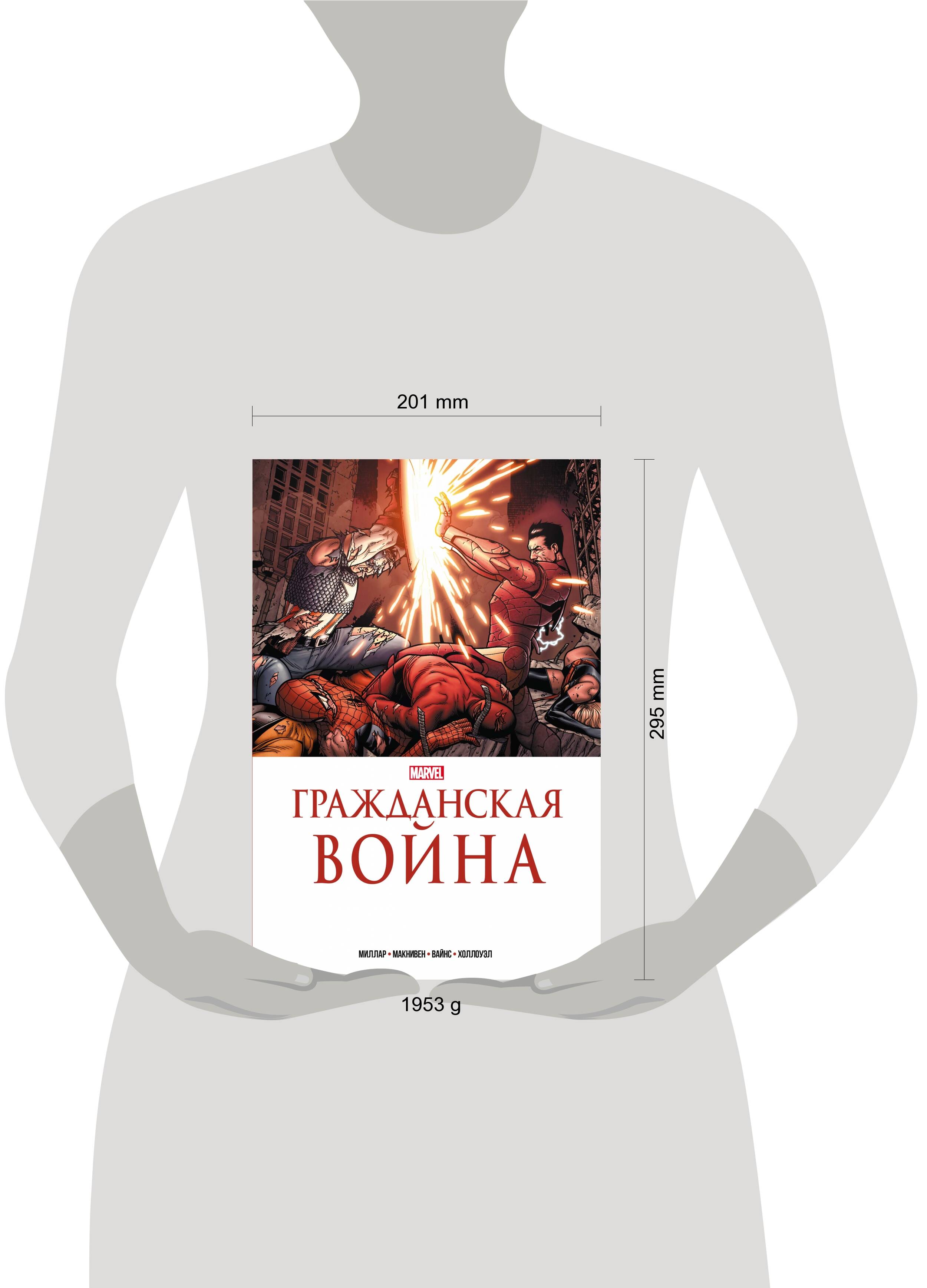 На чьей стороне ты? Вселенная Marvel меняется. После шокирующей трагедии правительство принимает Акт о регистрации суперлюдей, согласно которому герои в костюмах обязаны раскрыть свои тайные личности властям. Разрозненные защитники нации - Человек-паук, Новые Мстители, Фантастическая Четвёрка, Люди Икс и остальной пантеон - должны сделать выбор, от которого зависит вся их дальнейшая судьба! А также: отправьтесь за кулисы грандиозного кроссовера и узрите, как вертятся шестерёнки «Дома идей»! Сборник включает интервью со сценаристом и художником, первые черновики события, которое впоследствии стало «Гражданской войной», и сценарий всех семи выпусков с подробными комментариями авторов и редакторов. В книгу входят комиксы «Гражданская война» #1-7, спецвыпуск «Дэйли бьюгла» #1 и «Гражданская война: сценарий». Над серией работали Марк Миллар («Росомаха: враг государства», «Алтимейтс») и Стив Макнивен («Новые Мстители», «Старик Логан»).