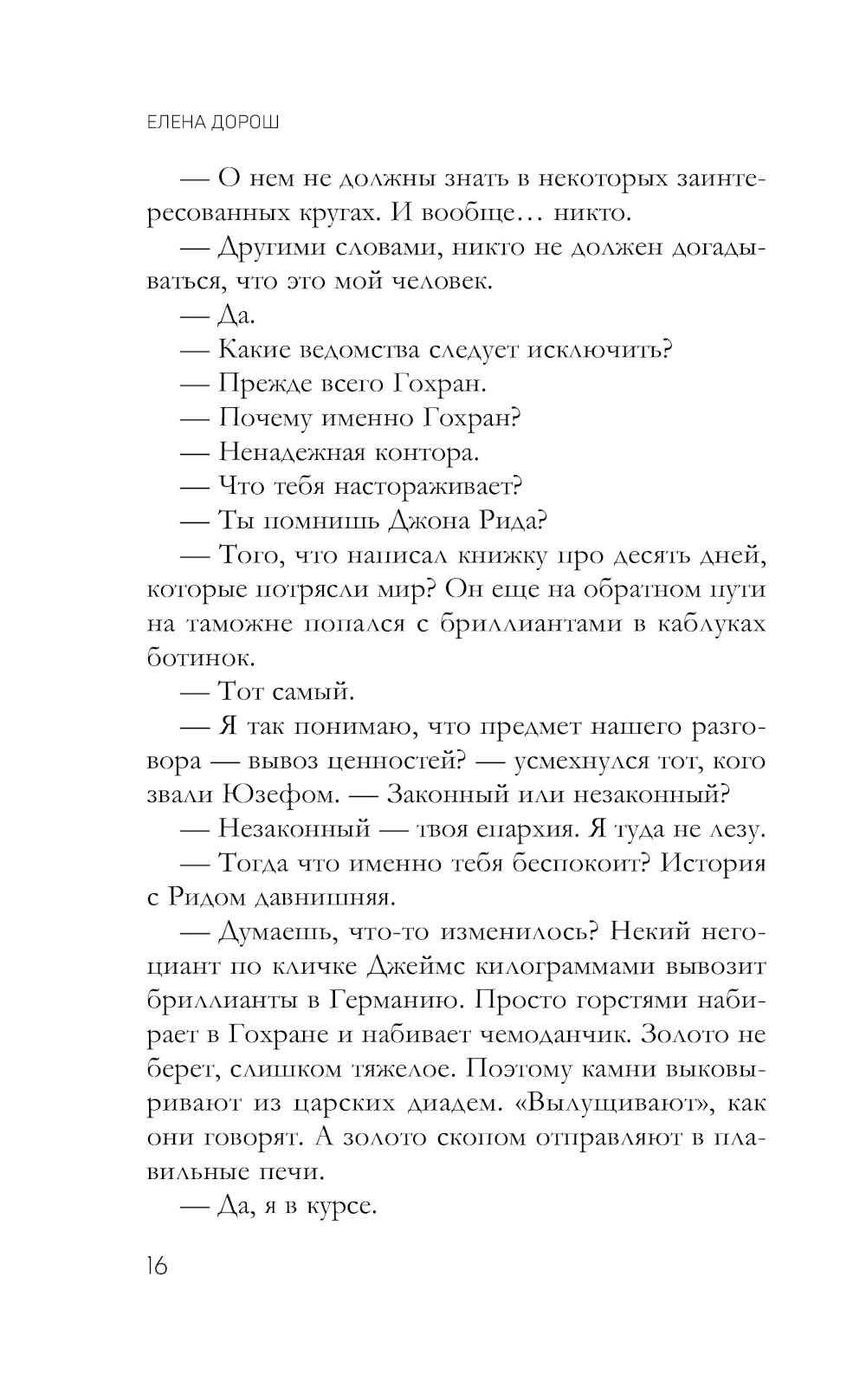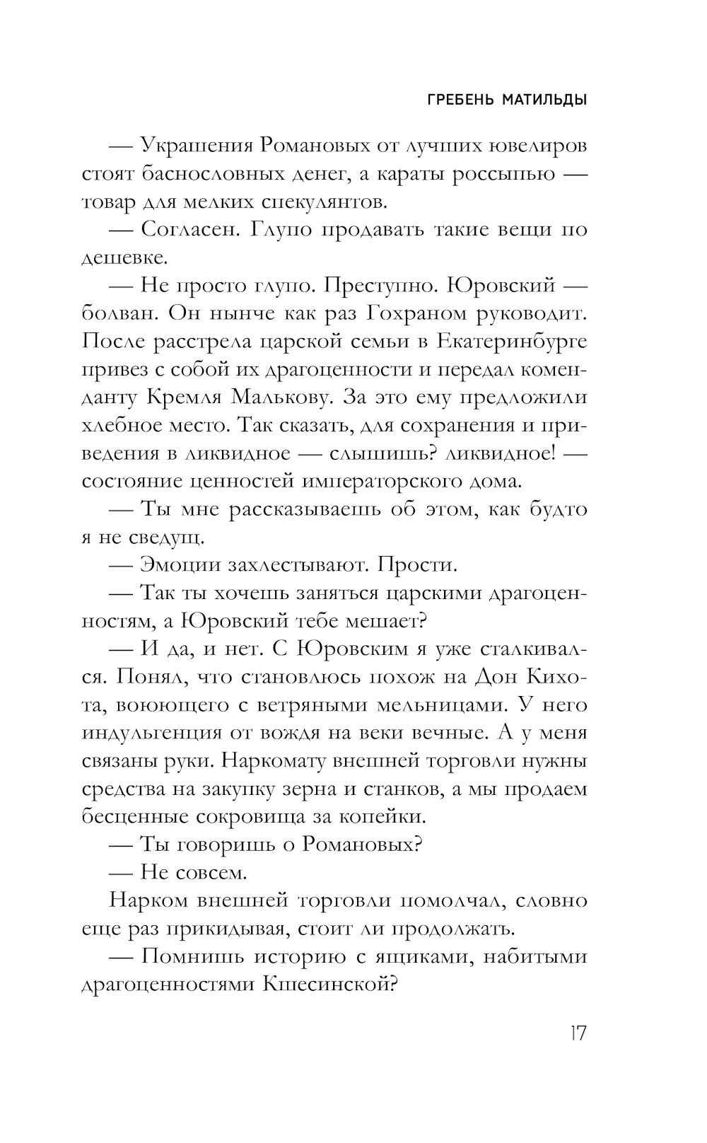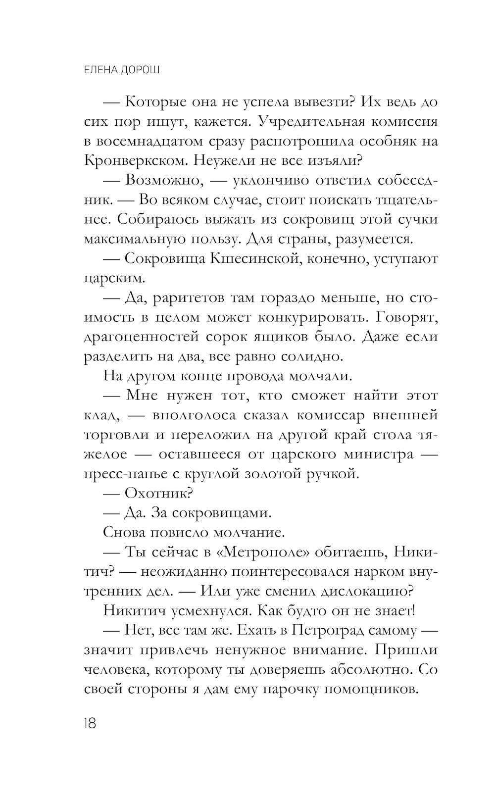 Анна Чебнева расследует серию жестоких убийств. Она уверена: умный и осторожный преступник ищет что-то очень ценное, и, похоже, эту драгоценность разыскивает не он один. Ведь каждый раз на месте преступления появляется незнакомец, которого ей никак не удается опередить. У Камы Егера свое задание. Он ищет тайник, в котором спрятаны драгоценности известной балерины, и молодая сотрудница уголовного розыска ему сильно мешает. Прошло немало времени, прежде чем они осознали, что нужны друг другу не только как партнеры. Куда приведет их расследование и как оно связано с историей гиперборейского гребня, найденного Николаем Гумилевым на далеком острове? Елена Дорош пишет для тех, кто не впадает в уныние, не боится испытаний и ждет от жизни только хорошее. Ее книги - не просто детективы. Они не только о любви. Каждая открывает увлекательную, порой малоизвестную сторону человеческого бытия.| Издательство | Эксмо |