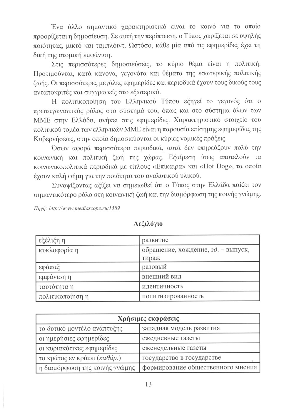 Греческий язык. Учебное пособие по журналистике. Уровень B2-C1