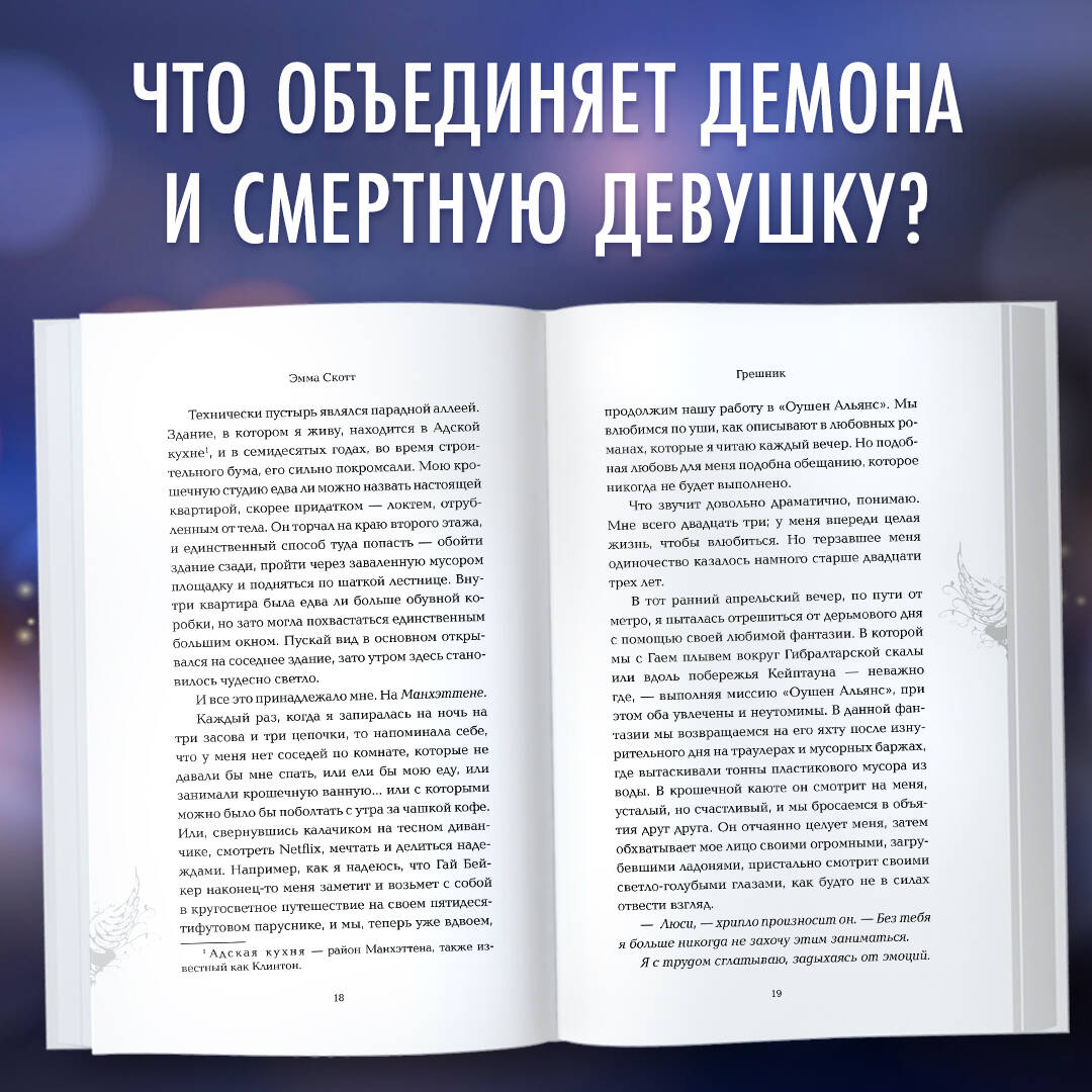 ЛЮСИ Я всегда считала себя интровертом. У меня была маленькая квартирка на Манхэттене и огромный стеллаж с романами о любви. Вечерами компанию мне составлял Эдгар, цветок в горшке. А парочки в метро раздражали: на их фоне я острее чувствовала себя одинокой. В тот день я обнаружила на пороге дома незнакомца. В его черных как смоль глазах отражалась вечность. Он напоминал скульптуру эпохи Возрождения. Из его белоснежной спины росли два черных крыла. Сердце подсказывало: нужно помочь. Хотя хотелось бежать. Бежать прочь от Кассиэля, живого олицетворения моих темных демонов. И той частицы меня, которая была мне не знакома. Кто знает, возможно, он мое самое страшное проклятие. КАССИЭЛЬ Давным-давно у меня была яркая жизнь. Я командовал целыми армиями. Теперь же мое оружие - человеческие желания и страсти. Я самое настоящее зло, исчадие ада. И мое время на исходе. Жажда искупления невыносима. Возможно, уже слишком поздно: у меня много грехов. Но каким бы невероятным это ни казалось, я стремлюсь к лучшему. Страшно отдавать свою вечную душу в руки простой девушки. Но знаю, Люси сможет мне помочь. Она соткана из света и укажет мне путь к спасению из бездонной тьмы. Уверен, Люси вспомнит меня и то, что нас связывало... Впервые от автора-феномена сентиментальной прозы Эммы Скотт - мистическая, сверхъестественная история любви демона и смертной девушки сквозь череду жизней. Такого у писательницы вы еще не читали, и вам непременно понравится! Эта история содержит в себе элементы фэнтези, но, как и в других книгах Эммы, на первом плане - глубокие чувства, обжигающая страсть, вопросы личного пути. Даже если сверхъестественное - не совсем ваша тема, все равно прочтите этот роман, поскольку вопросы, поднимаемые писательницей, найдут отклик у всех, кто когда-либо любил и терял, и взял на себя смелость принять в сердце эту единственную любовь, данную свыше. Люси - тихая, застенчивая мечтательница. Кассиэль - одинокий, саркастичный демон. Он приходит в ее мир, чтобы найти спасение. А она обретает в нем саму себя. В этом романе: паранормальное (демоны, ангелы), неземная любовь, шанс на искупление, тоска по вечному. Невероятная история, которая придется по душе всем, кому надоела приторная сентиментальная проза. Этот роман - ода любви, интровертности, сердцу с горем внутри. Он о преодолении личных демонов, борьбе друг за друга и за мир, в котором мы живем. Эмма глубоко затрагивает тему жизни души в оковах вечности, приводит глоссарий и дает свои определения понятиям потустороннего мира. А еще в книге много отсылок к шумерской мифологии, что добавляет колориту уникальности.| Издательство | ООО "Издательство "Эксмо" |