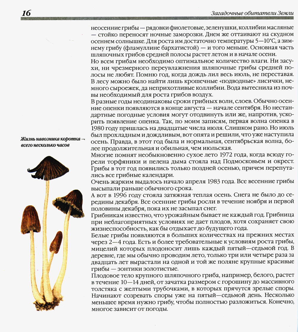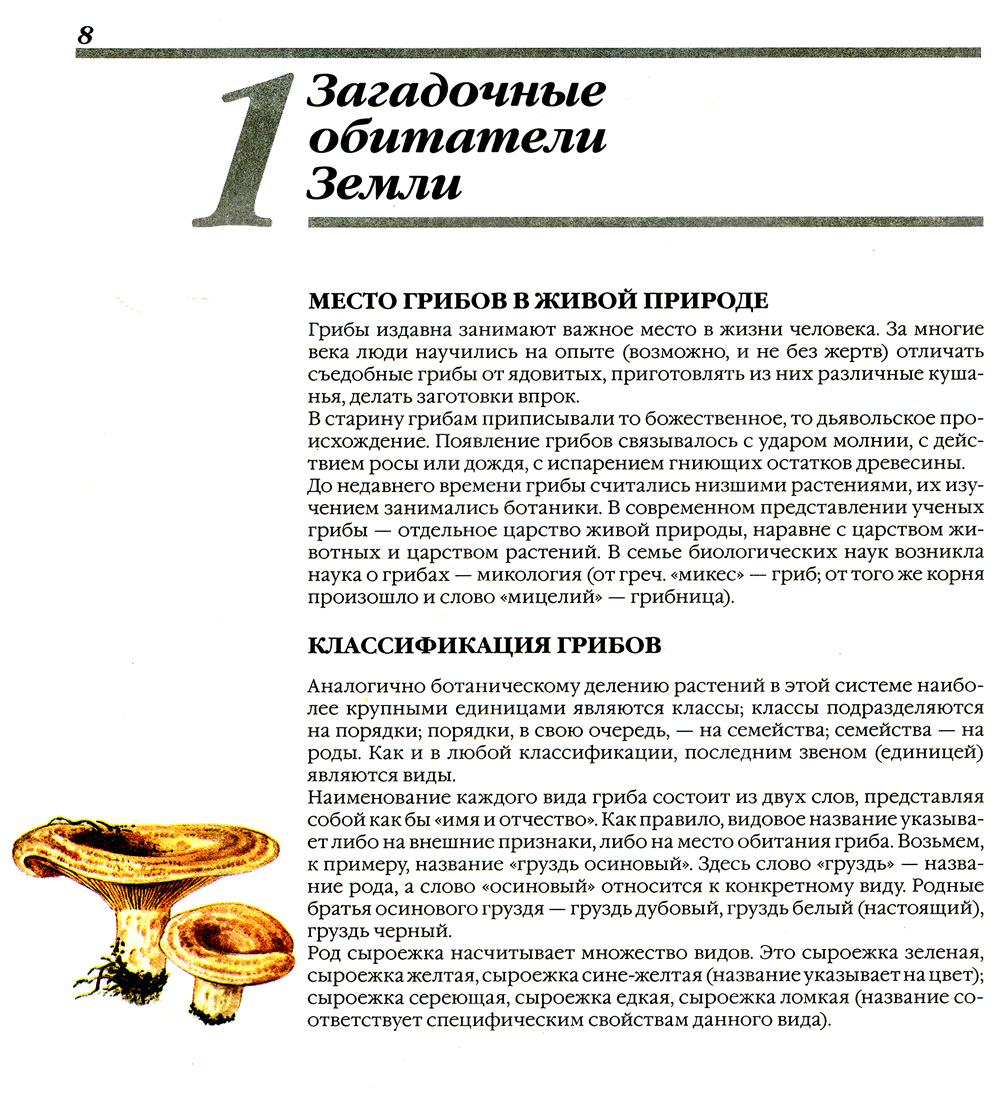 Перед нами не совсем обычная книга о грибах. Особенность и преимущество ее перед другими подобными изданиями в том, что ее автор - профессиональный художник, которому свойственны особая наблюдательность, умение увидеть, высветить детали, ускользающие от глаза даже очень опытного грибника. Рисуя грибы много лет, Мария Николаевна Сергеева наблюдала за ними, накапливала впечатления и знания об этих удивительных творениях Природы. Когда она выразила свои наблюдения не только рисунками, но и словами, получились описания грибов, по точности не уступающие описаниям профессионалов-микологов, но дополненные такими подробностями, которые может заметить только глаз художника. И описания, конечно, более эмоциональные, что делает их понятнее и ближе читателю. М. Сергеевой удалось подсмотреть много интересных особенностей в развитии, казалось бы, столь знакомых нам сыроежек, груздей, опенков. Эта книга - удачное сочетание рассказов об особенностях жизни грибов в природе, взаимосвязи их с другими организмами - растениями, насекомыми, теплокровными животными, - с точными, грамотными описаниями самих грибов, легко узнаваемых не только по рисункам, но и по тексту. Книга принесет в ваш дом свежий аромат летнего или осеннего леса, вы получите много полезных сведений о заготовке и приготовлении грибов, которыми щедро делится автор.