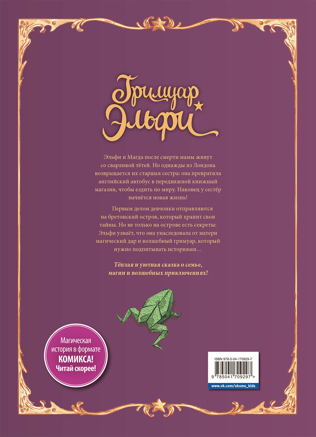Магическая история в формате комикса для тех, кому нравятся книги о ведьмах, волшебстве и приключениях! Эльфи и Магда остались без матери, поэтому они живут с тётей. Однажды из Лондона приезжает их старшая сестра, которая превратила английский автобус в передвижной книжный магазин, чтобы путешествовать. Наконец у девочек есть шанс начать новую жизнь! Первое место, куда они отправляются, - бретонский остров, полный тайн. Однако, не только остров таит в себе секреты: Эльфи узнаёт, что ей от матери достался волшебный дар...| Издательство | ООО "Издательство "Эксмо" |