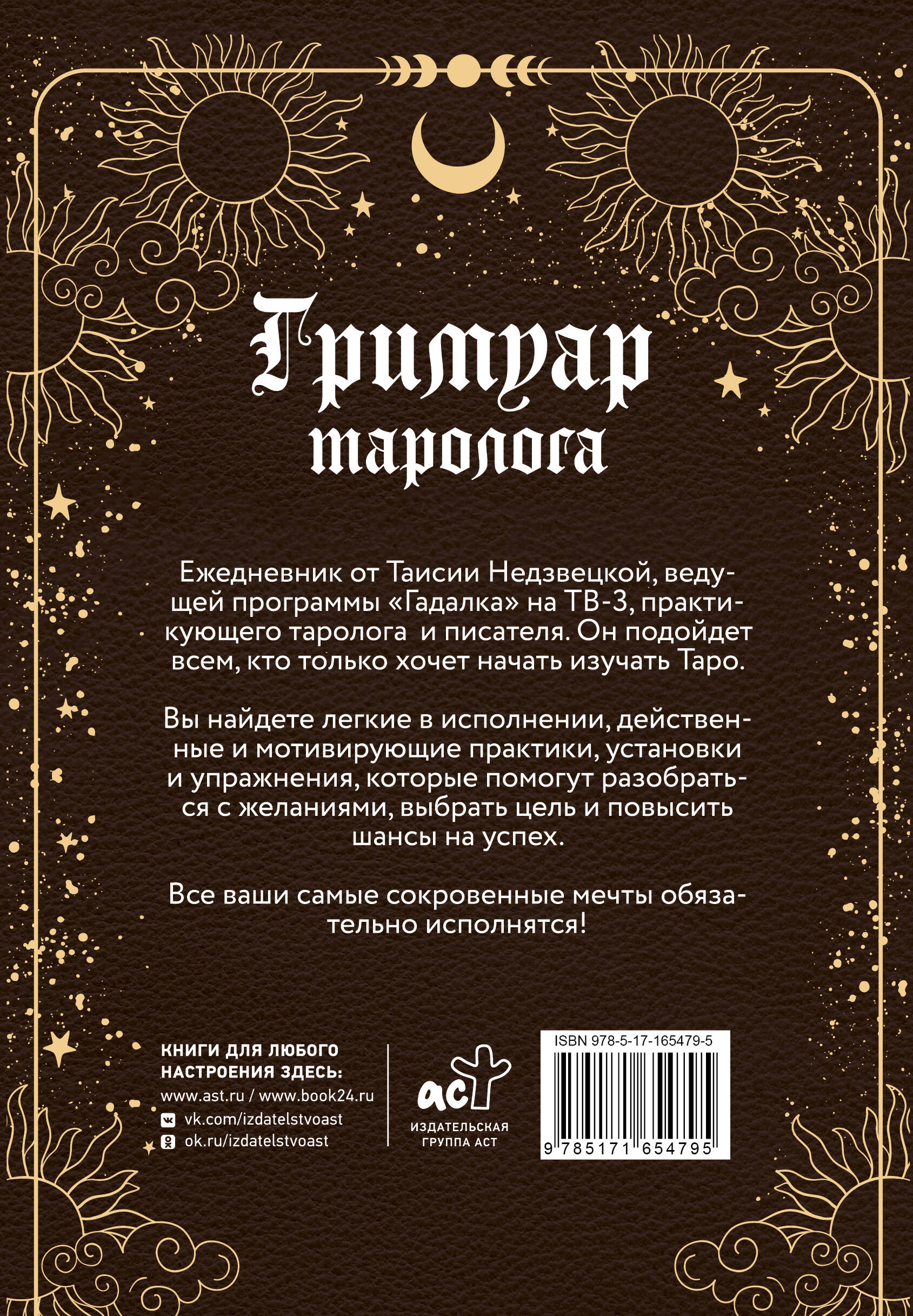 Ежедневник от Таисии Недзвецкой, ведущей программы "Гадалка" на ТВ-3, практикующего таролог и писателя. Он подойдет всем, кто только хочет начать изучать Таро. Вы найдете легкие в исполнении, действенные и мотивирующие практики, установки и упражнения, которые помогут разобраться с желаниями, выбрать цель и повысить шансы на успех. Все ваши самые сокровенные мечты обязательно исполнятся!| Издательство | Издательство "АСТ" |