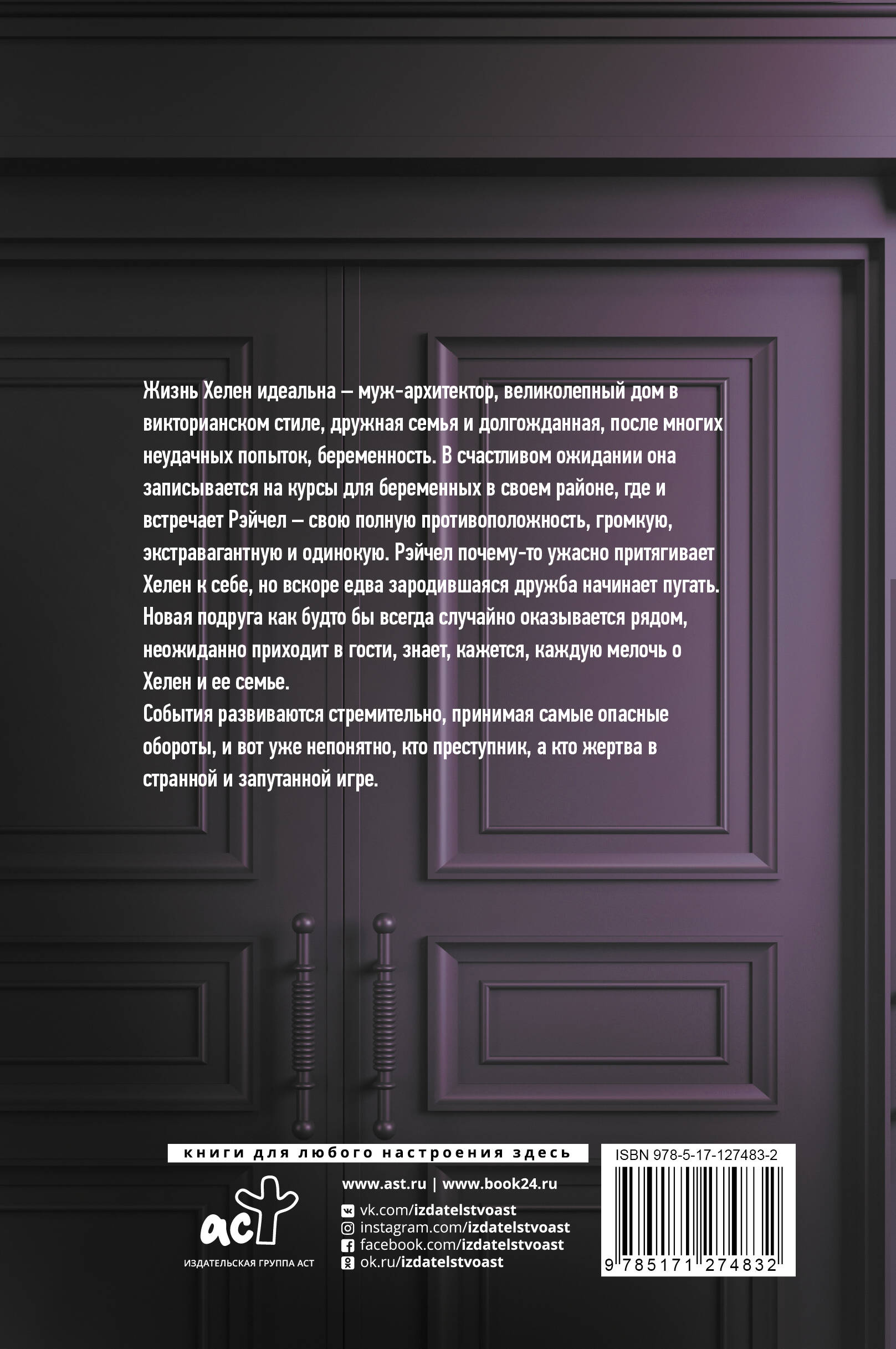 • Дебютный роман Кэтрин Фолкнер - напряженный триллер в духе «Девушки в поезде» Полы Хокинс. • «Фолкнер создала оригинальный психологический триллер, взглянув на декретный отпуск под необычным углом. События развиваются быстро, а сюжет полон неожиданных поворотов» - SUNDAY TIMES • «Мастерски закрученный сюжет, игра в кошки-мышки» - Рут Уэйр, автор бестселлеров New York Times • Одна из обязательных к прочтению книг 2021 года по версии газеты Daily Mail У Хелен есть все, о чем она могла мечтать. Идеальный муж, идеальная семья, идеальный дом, долгожданная беременность. А еще есть Рэйчел - идеальный ночной кошмар. Хелен встречает ее на курсах для беременных - одинокую, экстравагантную, скандальную и почему-то очень притягательную. Они начинают общаться. Со временем Рэйчел появляется в жизни Хелен все чаще - сначала она просто хочет познакомиться поближе, потом хочет стать другом семьи, хочет знать о Хелен все - и, кажется, действительно знает каждый ее секрет. События разворачиваются слишком быстро, и оказывается, что Хелен замешана в странную и запутанную игру.| Издательство | ИЗДАТЕЛЬСТВО "АСТ" |