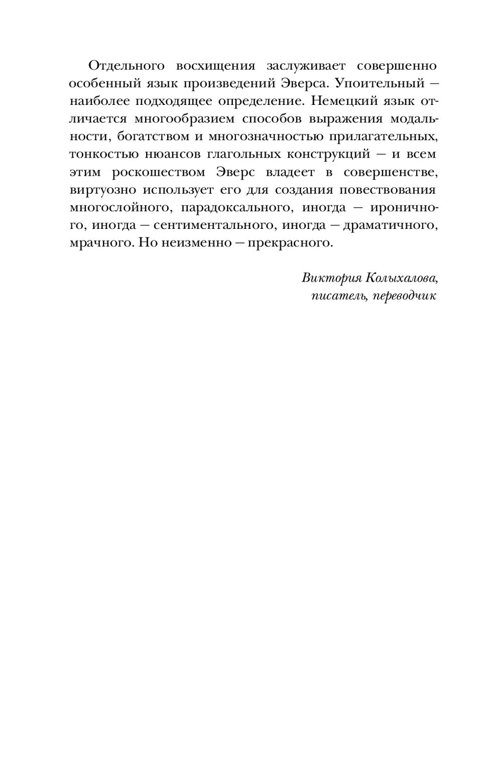 В очередном томе сочинений Ханса Хайнца Эверса, «немецкого Эдгара По» и кумира Лавкрафта, представлены два цикла рассказов писателя - «Ужасы» и «Гротески». Творчество Эверса, обнажающее ужас человеческих взаимоотношений, впитало традиции романтизма, декаданса и экспрессионизма. Герои его рассказов попадают в ситуации, требующие чудовищных усилий воли и напряжения самых темных сторон людской природы. Сборник рассказов «Ужасы» представлен полностью. Состав «Гротесков» Эверс несколько раз перерабатывал; в настоящем издании читатель найдет наиболее значимые произведения, вошедшие в разные варианты этого сборника. Существенная часть текстов представлена в новых переводах. Замыкает книгу страстное эссе Эверса о его любимом писателе - Эдгаре Аллане По.| Издательство | Рипол Классик |