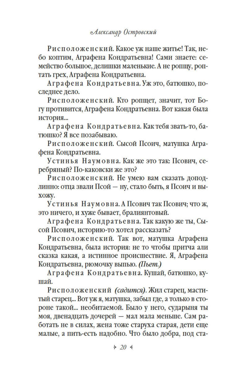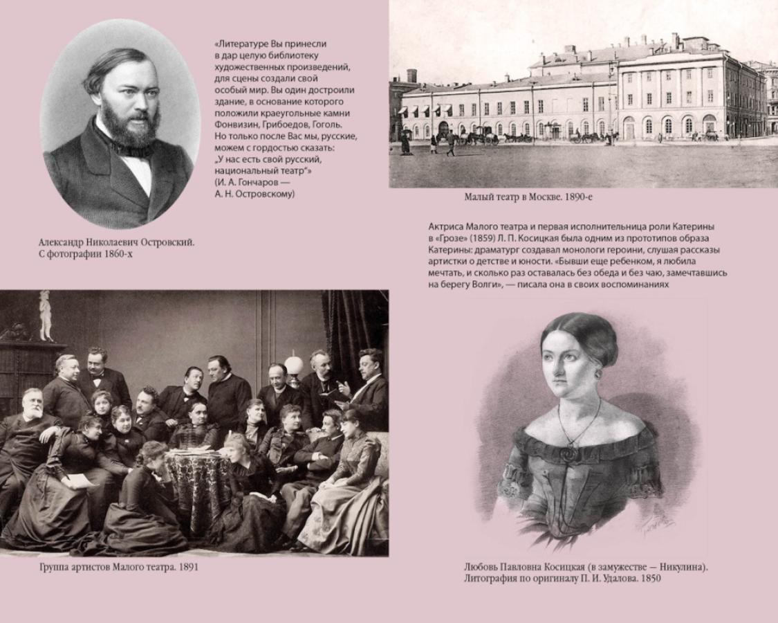 Серия «Театральные сезоны» - это увлекательное путешествие в мир театра. «Русский Шекспир», «Замоскворецкий Колумб» - именно так называли драматурга Александра Николаевича Островского его современники. Создатель русского национального репертуара, он вывел на сцену целую галерею самобытных образов. Герои Островского - зажиточные купцы и мелкие чиновники, провинциальные актеры и богомольные странницы, богатые вдовы и девицы на выданье. Творческая судьба драматурга была тесно связана с Малым театром, по праву называемым «Домом Островского»: он принимал участие в постановках своих пьес, дружил с актерами, часто бывал на репетициях. В настоящее издание вошли шесть наиболее известных произведений А. Н. Островского: драмы «Гроза» и «Бесприданница», комедии «Свои люди - сочтемся!», «На всякого мудреца довольно простоты», а также пьесы о людях театра «Лес» и «Без вины виноватые», где сцена и жизнь причудливо переплетаются между собой. В книге представлены фотографии знаменитых постановок по пьесам драматурга: от спектаклей императорской сцены до режиссерских опытов Всеволода Мейерхольда, Сергея Эйзенштейна и Александра Таирова.| Издательство | Азбука |