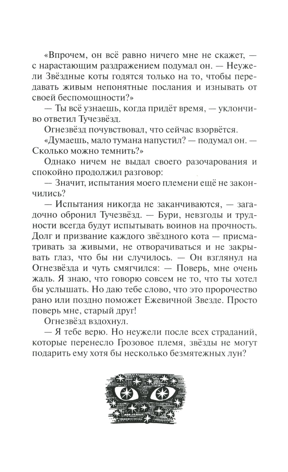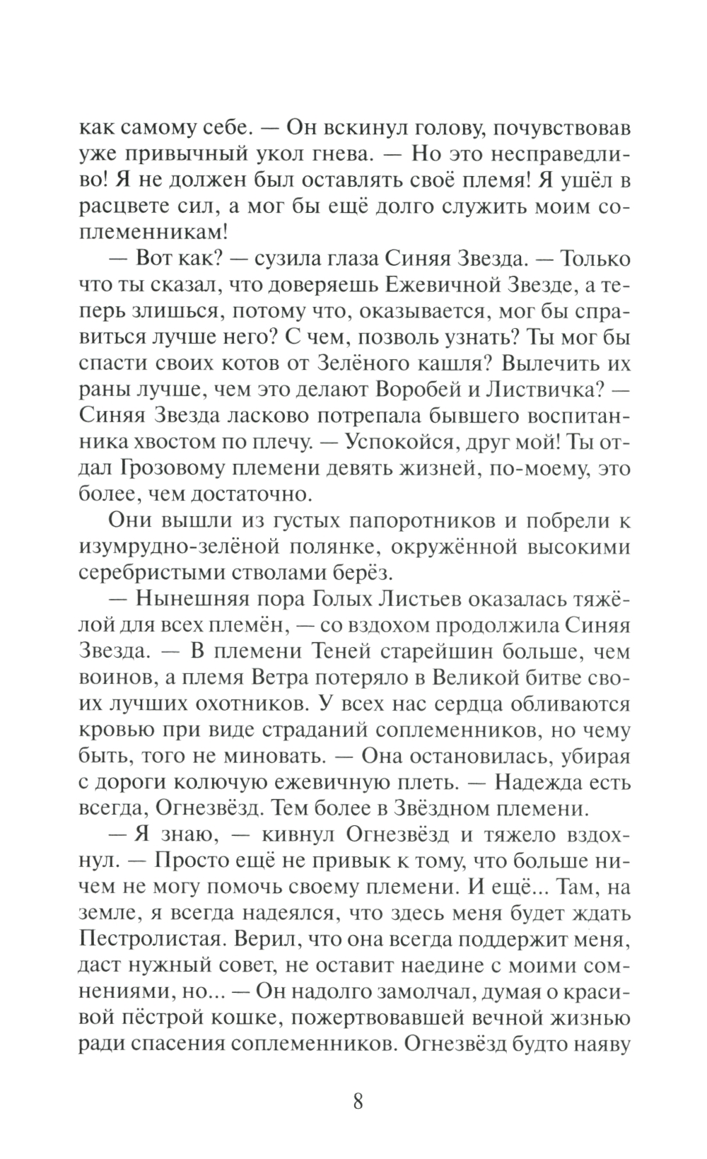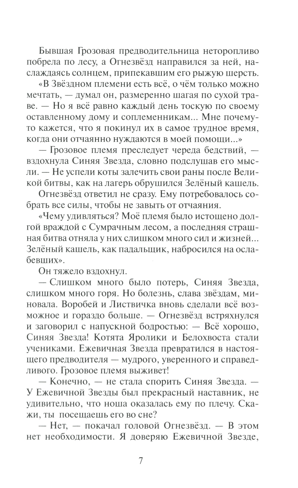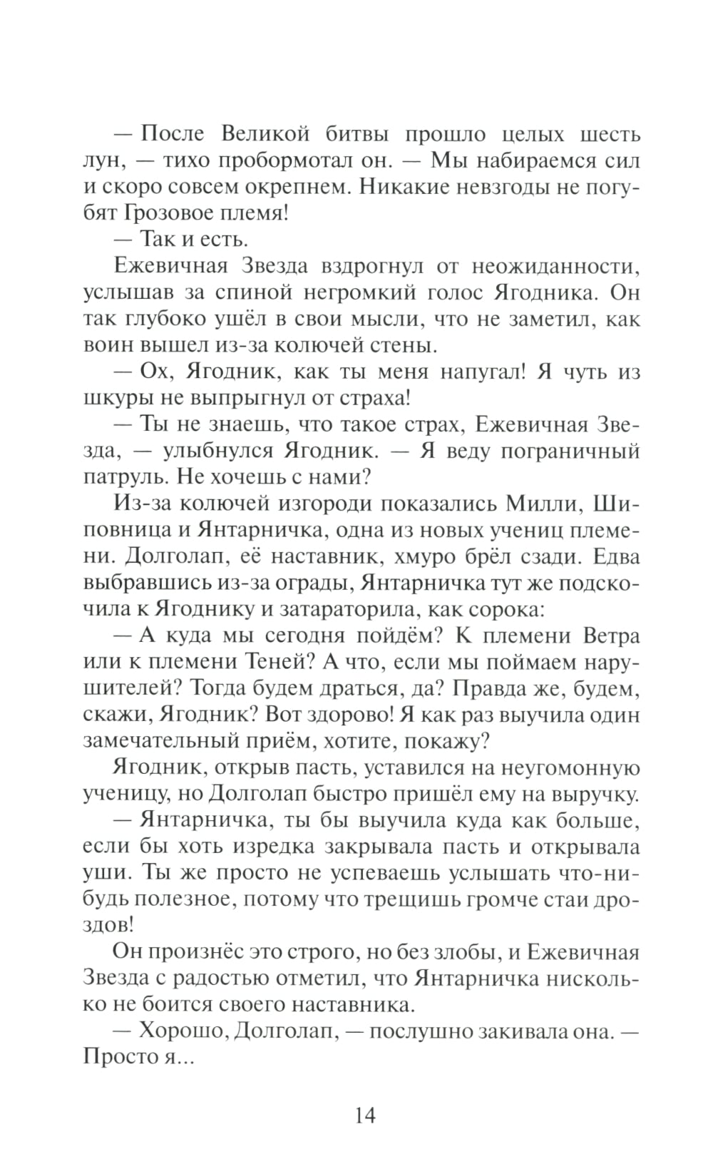 Отгремела великая битва с Сумрачным лесом. Грозовые коты, потерявшие в этом страшном сражении предводителя Огнезвёзда, понемногу приходят в себя и с надеждой ждут начала сезона Юных Листьев, а вместе с ним - возможности залечить раны и восстановить силы. Однако вместо долгожданного тепла на лес обрушивается новое бедствие - небывалое наводнение грозит затопить территории всех четырёх племён. Вода прибывает и прибывает. Найти добычу с каждым разом оказывается всё сложнее. Обстановка в лесу накаляется... Ежевичная Звезда, новый предводитель Грозовых котов, ставший достойным преемником Огнезвёзда, всеми силами помогает своему племени и поддерживает хрупкий мир с соседями. Он не бросает в беде любого, попавшего в трудную ситуацию, в том числе домашних котов, вынужденных покинуть затопленные гнёзда Двуногих. Однако главное испытание ещё впереди, ведь под напором стихии племена могут исчезнуть навсегда... «Бедствие» - первая книга спецтома-дилогии «Гроза Ежевичной Звезды».| Издательство | Просвещение |