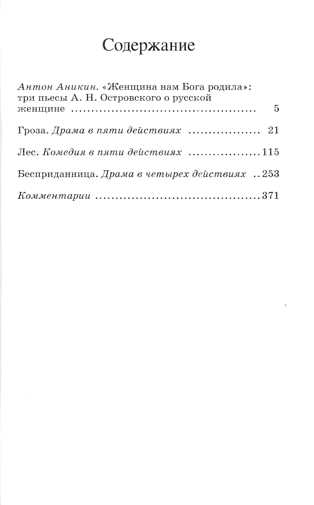 Настоящее издание включает в себя пьесы «Гроза», «Лес» и «Бесприданница». «Как же не любить женщину, она нам Бога родила» - вот та нить, которая объединяет в этой книге три самые известные пьесы драматурга А. Н. Островского.