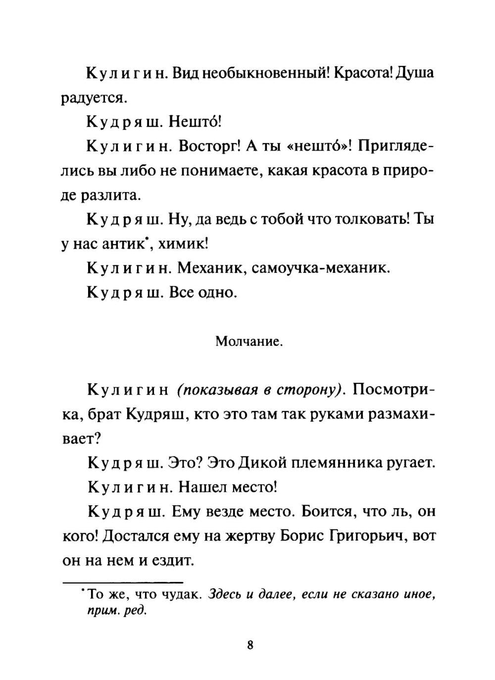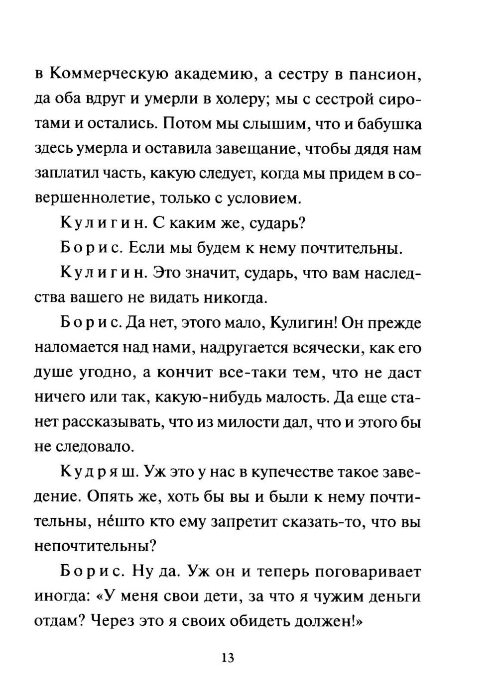 «Гроза» родилась из литературной экспедиции Островского по Волге - и из пылкой любви молодого драматурга к актрисе Любови Косицкой. Именно ее лучшие черты легли в характер Катерины Кабановой, и именно она первая исполнила эту роль на сцене. Пьеса стала громким событием в литературной жизни своего времени и по сей день не сходит с театральных подмостков. Выращенная в родительской любви и ласке, Катерина после замужества оказывается в доме, в котором жизнь подчинена домостроевским законам и жестокой воле свекрови. И на свою беду влюбляется в другого мужчину... Готова ли она рискнуть всем - и даже чистотой своей души - ради этой нежданной любви?| Издательство | Манн, Иванов и Фербер |