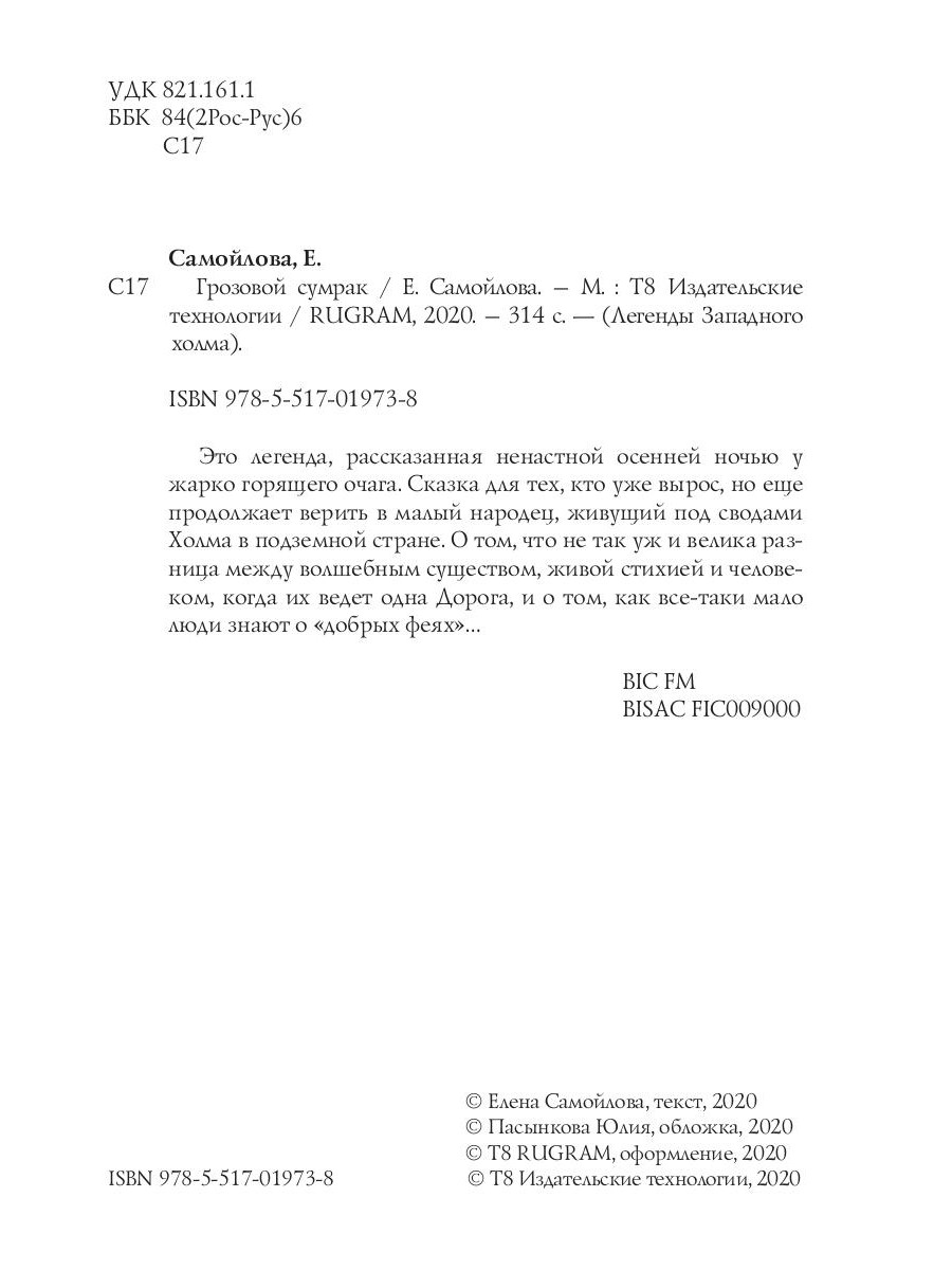Это легенда, рассказанная ненастной осенней ночью у жарко горящего очага. Сказка для тех, кто уже вырос, но еще продолжает верить в малый народец, живущий под сводами Холма в подземной стране. О том, что не так уж и велика разница между волшебным существом, живой стихией и человеком, когда их ведет одна Дорога, и о том, как все-таки мало люди знают о «добрых феях»...| Издательство | Т8 RUGRAM |