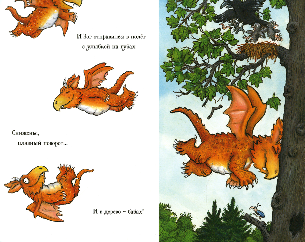 Сказка в стихах для чтения взрослыми детям. Маленький мышонок идет через дремучий лес и, чтобы спастись от лисы, совы и змеи, выдумывает страшного груффало - зверя, который очень любит есть лис, сов и змей. Но сможет ли находчивый мышонок перехитрить всех голодных хищников? Ведь он-то хорошо знает, что никаких груффало не бывает... Или бывает? «Мадам Драконни - просто клад: нет лучше педагога. Она учила драконят no-доброму, но строго.» ...Рыжий дракон Зог ходит в школу и учится летать, грозно рычать, дышать огнем и биться с рыцарями. Но сможет ли он справиться с самым сложным домашним заданием - похищением принцессы - и заслужить в награду золотую звездочку? И кто та загадочная девочка, которая всегда приходит на помощь Зогу? Сказка в стихах для чтения взрослыми детям.| Издательство | Машины творения |