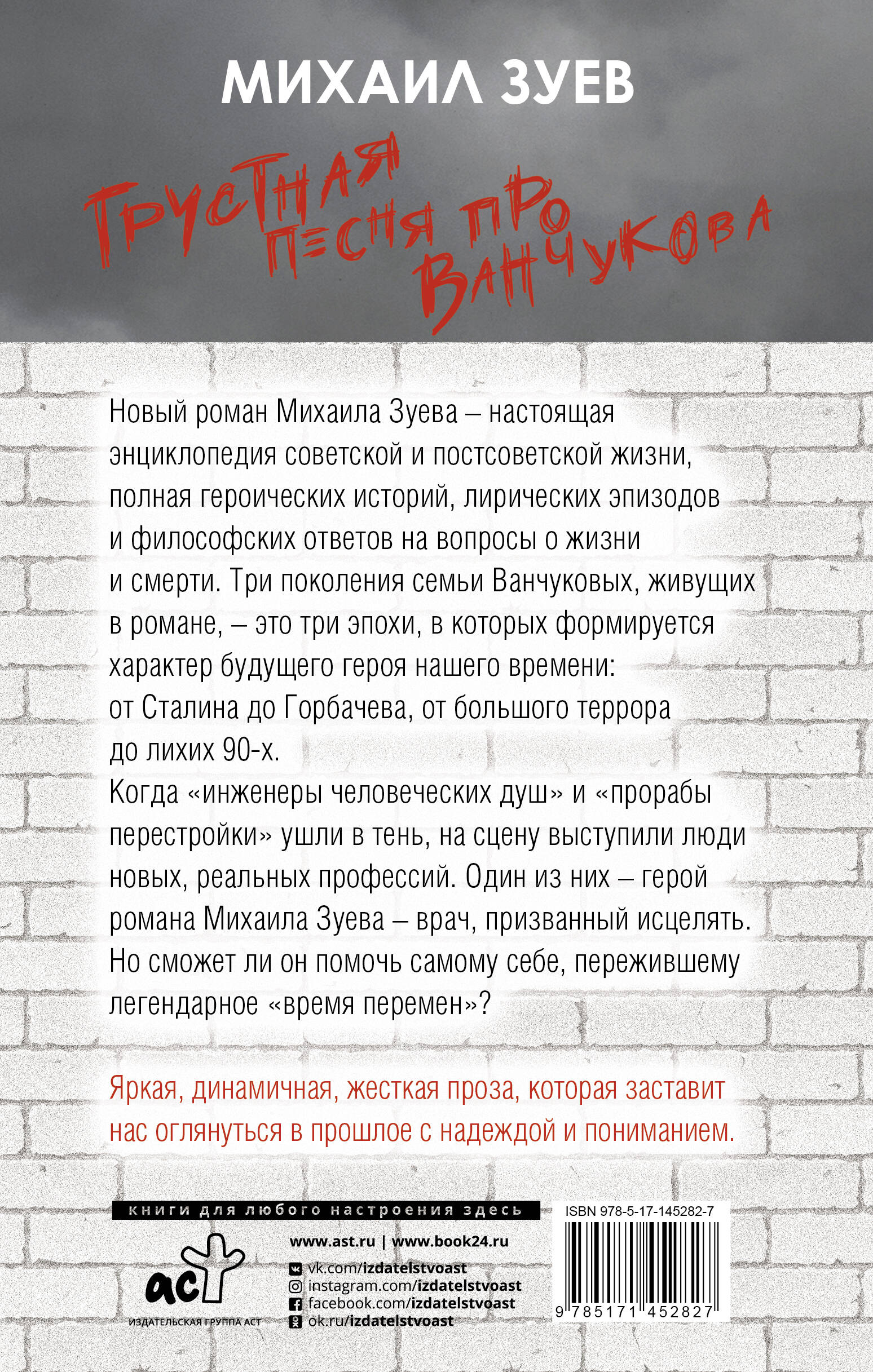 Новый роман Михаила Зуева - настоящая энциклопедия советской и постсоветской жизни, полная героических историй, лирических эпизодов и философских ответов на вопросы о жизни и смерти. Три поколения семьи Ванчуковых, живущих в романе, - это три эпохи, в которых формируется характер будущего героя нашего времени: от Сталина до Горбачева, от большого террора до лихих 90-х. Когда «инженеры человеческих душ» и «прорабы перестройки» ушли в тень, на сцену выступили люди новых, реальных профессий. Один из них - герой романа Михаила Зуева - врач, призванный исцелять. Но сможет ли он помочь самому себе, пережившему легендарное «время перемен»? Яркая, динамичная, жесткая проза, которая заставит нас оглянуться в прошлое с надеждой и пониманием.| Издательство | Издательство "АСТ" |
