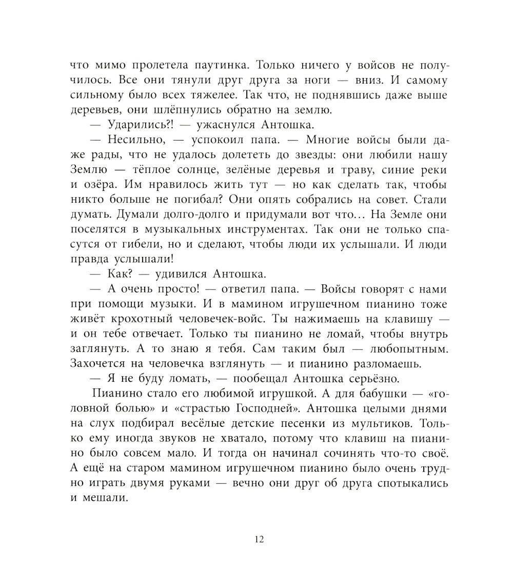 Добрая и увлекательная повесть Александра Турханова о музыкально одарённом мальчике стала лауреатом IV Международного конкурса имени Сергея Михалкова на лучшее художественное произведение для подростков. Однажды у Антошки появилось маленькое игрушечное пианино. Мир звуков увлёк мальчика; оказалось, что он обладает абсолютным слухом. А ещё у него редкий дар - умение вслушиваться в музыку. Всё, что видит Антошка, он хочет передать звуками: и стеклянный дождь, и танцующего вальс неуклюжего дракона. Впечатления каждого дня рождают мелодии - порой светлые, а порой и сумрачные, но всегда необычные и талантливые. Для среднего школьного возраста.| Издательство | Детская литература |