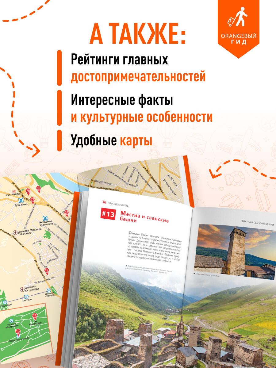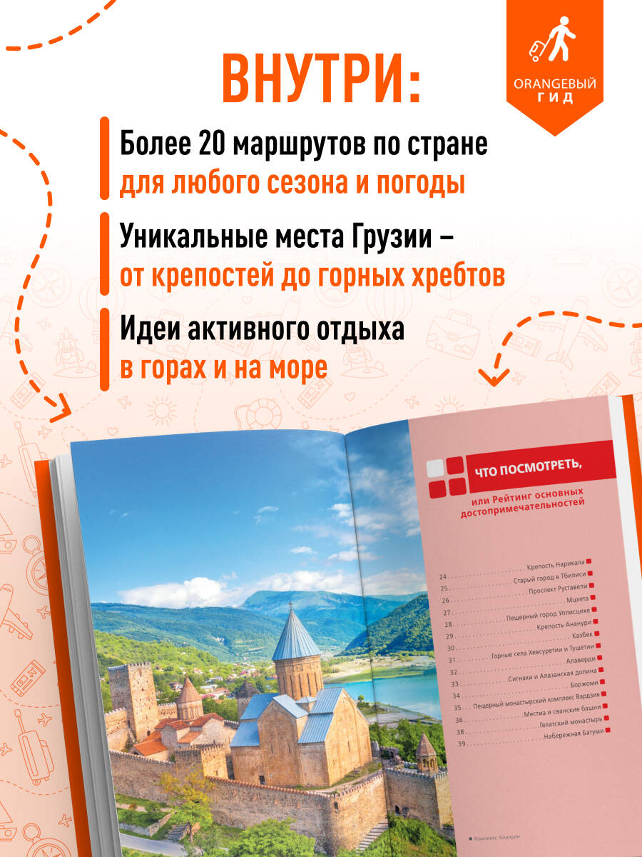 Чистейший воздух, горные красоты, виноделие, крепости и богатая культура - все это про Грузию! Отправляйтесь в незабываемое путешествие по стране вместе с нашим Оранжевым гидом! В нем содержится актуальная и полезная информация о главных городах страны, различные маршруты на любой вкус, подсказки, что делать, если идет дождь, или где искать лучшие смотровые площадки, а также множество полезных авторских советов. Посетите пещерный город Уплисцихе, песочные пляжи Батуми, город-курорт Боржоми, загадочные горные крепости - выбор только за вами! Вас ждут варианты прогулок по Тбилиси, а также готовые маршруты поездок по главным достопримечательностям Грузии. Сориентироваться на местности помогут удобные карты, расположенные на страницах путеводителя. Вся информация актуальна на 2024 год.