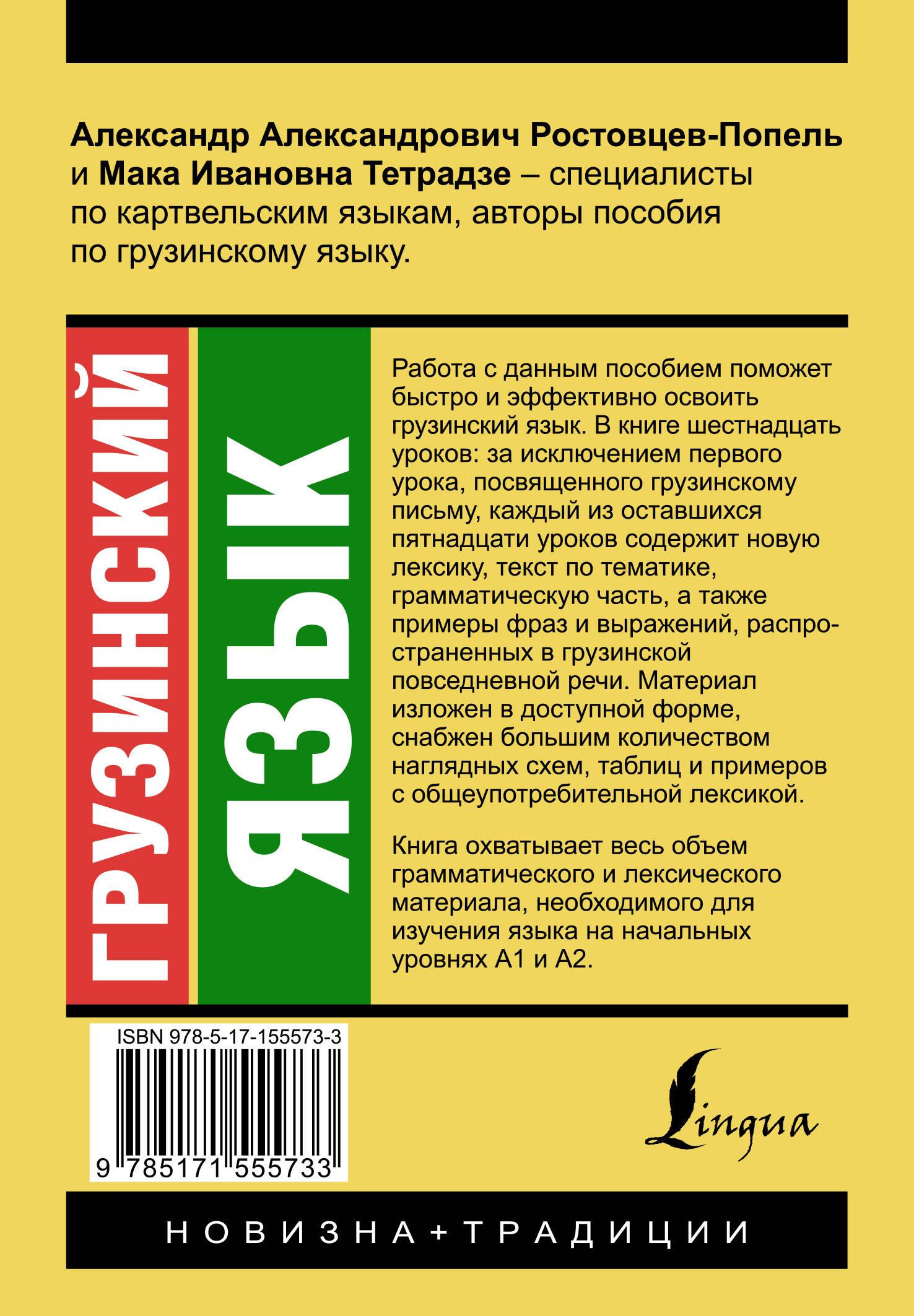 Александр Александрович Ростовцев-Попель и Мака Ивановна Тетрадзе - специалисты по картвельским языкам, авторы пособия по грузинскому языку. Работа с данным изданием поможет быстро и эффективно освоить грузинский язык. В книге шестнадцать уроков: за исключением первого урока, посвященного грузинскому письму, каждый из оставшихся пятнадцати уроков содержит новую лексику, текст, по тематике соответствующий материалу всего урока, грамматическую часть, а также примеры фраз и выражений, распространенных в грузинской повседневной речи. Материал изложен в доступной форме, снабжен большим количеством наглядных схем, таблиц и примеров с общеупотребительной лексикой. Для успешного закрепления каждой темы предлагаются упражнения разнообразного характера. В конце книги вы найдете ключи и перечень-словник, в котором приведены лексические единицы, словосочетания и выражения, использованные в пособии. Книга охватывает весь объем грамматического и лексического материала, необходимого для изучения языка на начальных уровнях А1 и А2. Издание предназначено для широкого круга лиц, изучающих грузинский язык, и, в первую очередь, для тех, кто решил овладеть им самостоятельно.| Издательство | ИЗДАТЕЛЬСТВО "АСТ" |