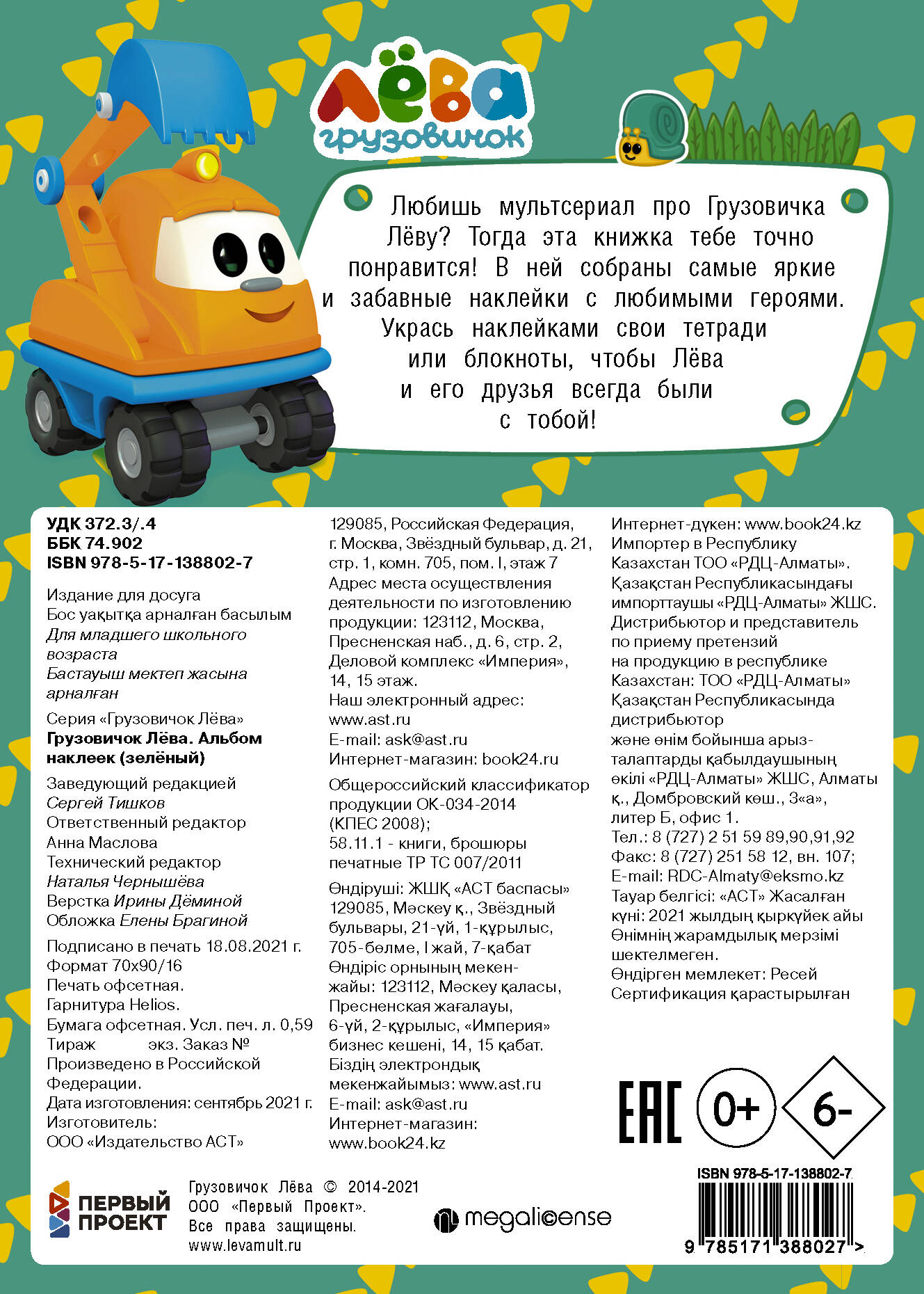 Аннотация: Грузовичок Лёва. Альбом наклеек (зелёный)