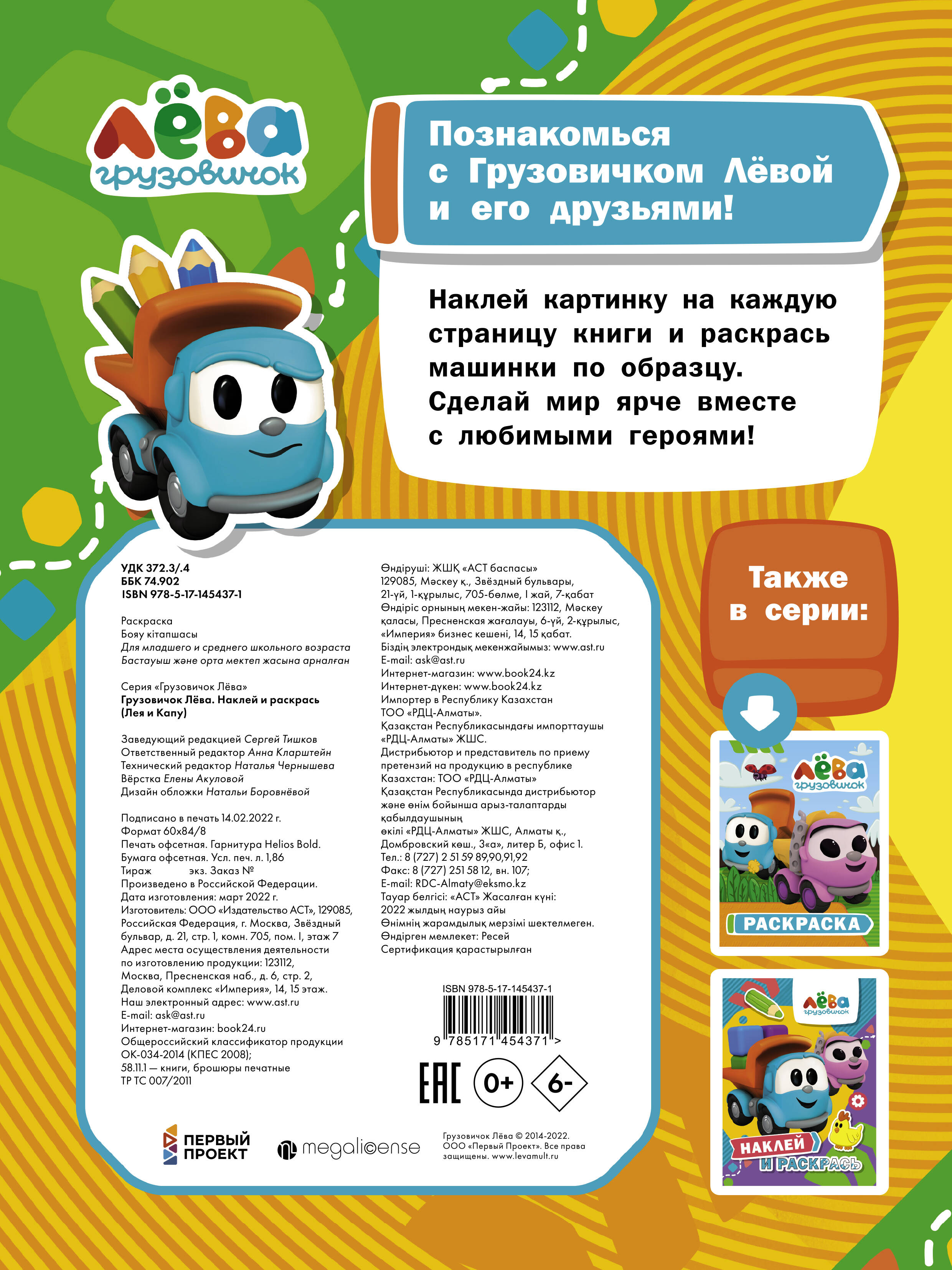 Аннотация: Грузовичок Лёва. Наклей и раскрась (Лея и Капу)