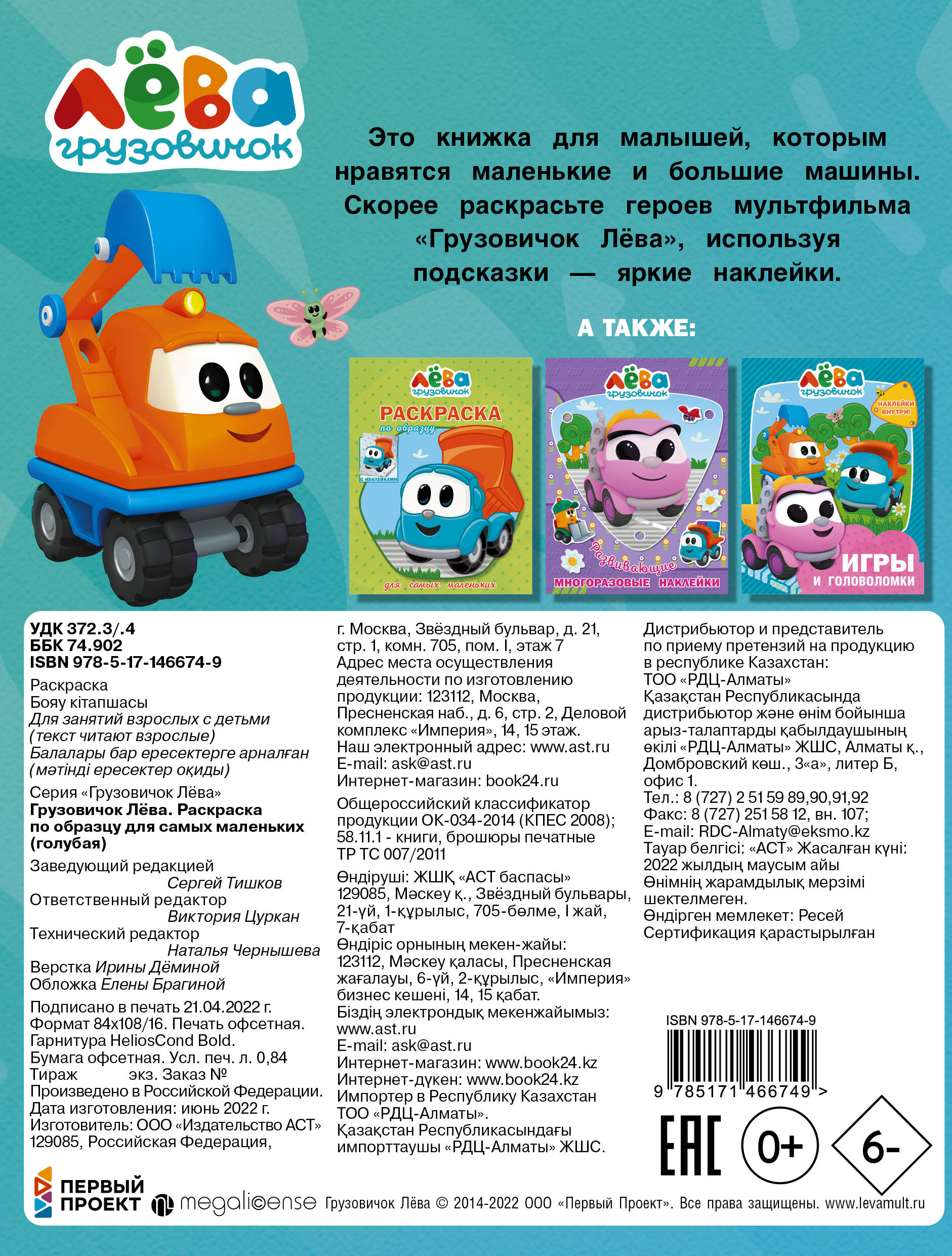 Аннотация: Грузовичок Лёва. Раскраска по образцу для самых маленьких (голубая)