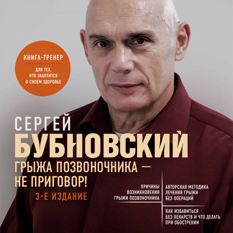 Все больше и больше людей, имеющих проблемы со спиной, разочаровываются в общепринятых методах лечения: операциях и лекарственных препаратах. Сергей Бубновский - доктор медицинских наук, профессор, автор принципиально новых безоперационных методов лечения позвоночника и суставов, создатель нового направления в медицине - кинезитерапии, в которой сам больной активно участвует в своем выздоровлении благодаря внутренним резервам и пониманию своего тела. В этой книге доктор Бубновский отвечает на самые распространенные вопросы о болезнях спины и рассказывает о том, как поддерживать позвоночник с помощью упражнений. Методы подойдут как молодым, так и пожилым людям, имеющим сопутствующие заболевания.| Издательство | ООО "Издательство "Эксмо" |