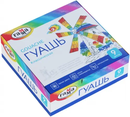 Гуашь Гамма "Классическая", 9 цветов, 20 мл